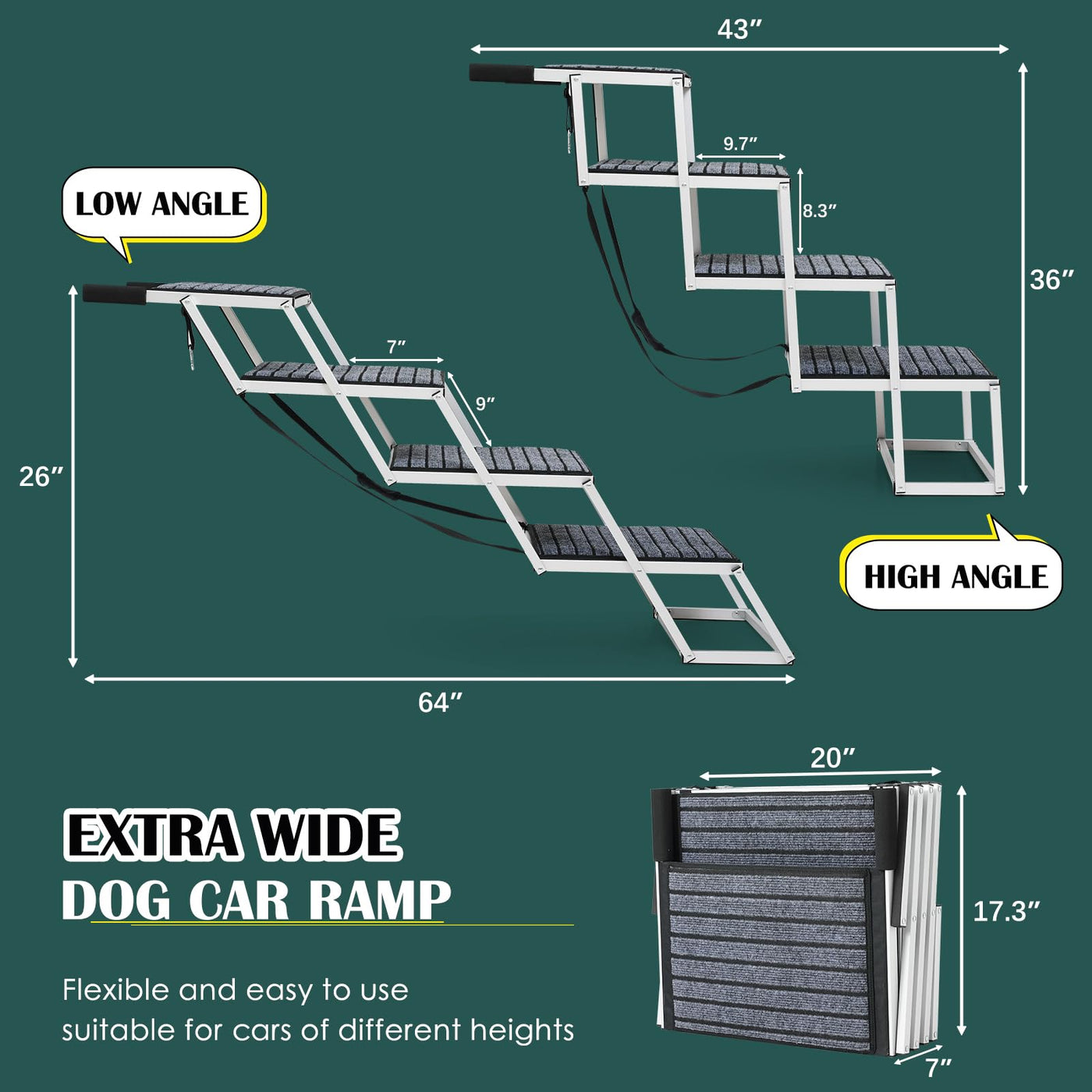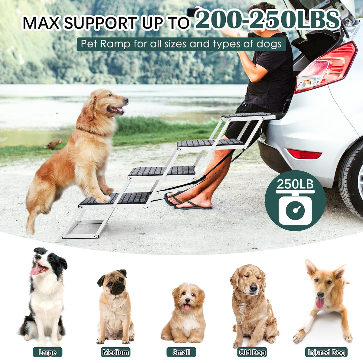 Dog Ramp for Car, Extra Wide Dog Car Stair for Large Dogs, Pet Steps Lightweight Aluminum Foldable Dog Steps for Cars and SUV,Hi