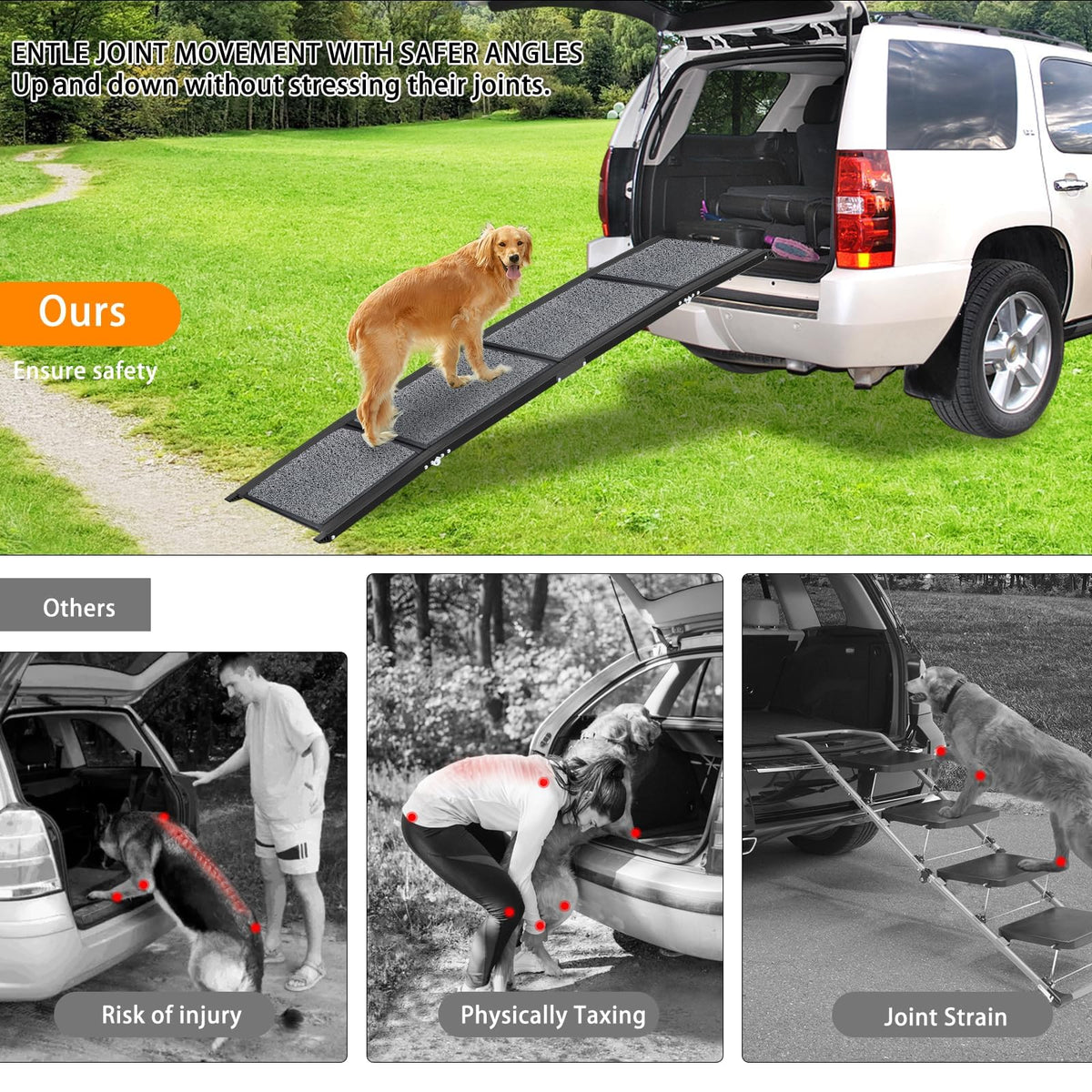 Dog Ramp For Car,Muzefansi Portable Folding Pet Stair Ramp For Medium & Large & Old Dogs - Up To 220Lbs, 63'' 17'' Large Dog Ca