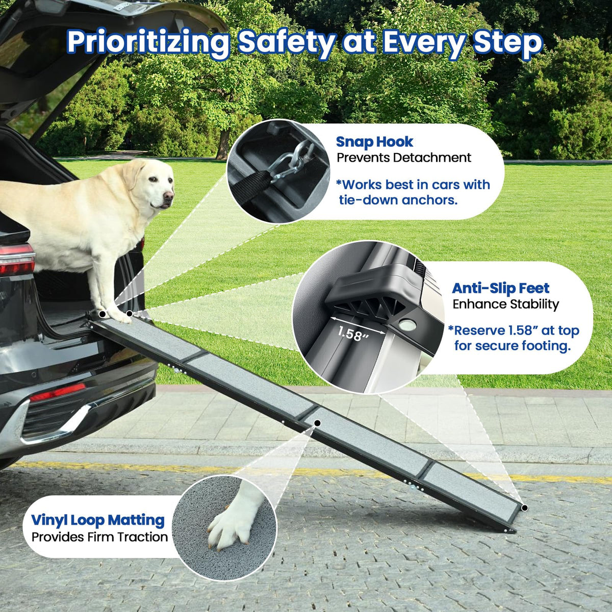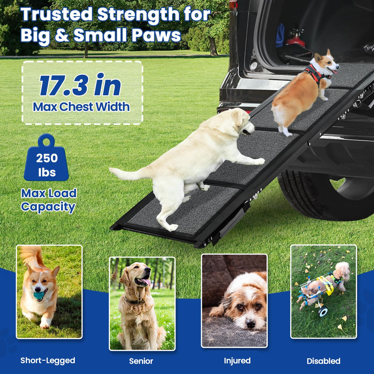 Dog Ramp For Car, Pawlify 71'' X 17.3'' Dog Ramps For Large Dogs With Anti-Pinch Handle And Anti-Slip Rug Surface, Folding Dog R