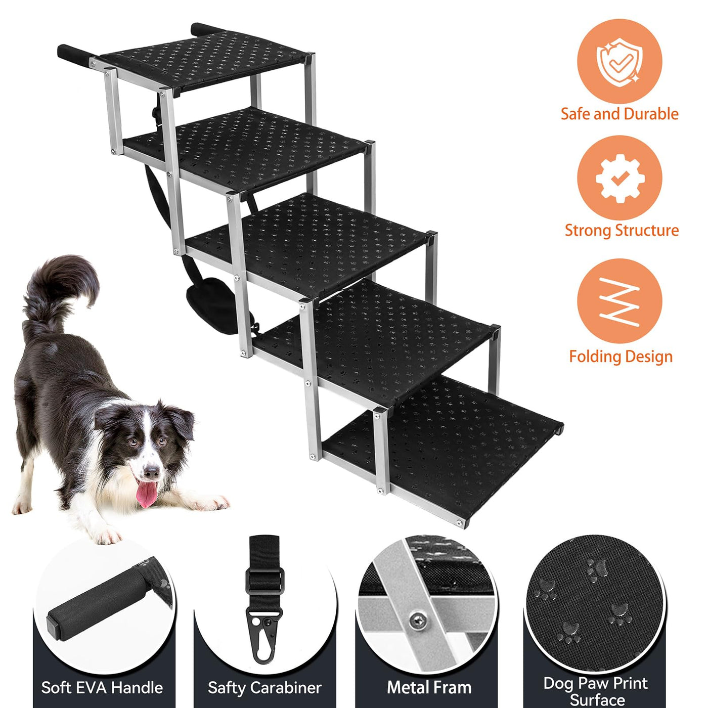 Dog Ramps For Large Dogs - Portable Dog Steps For Cars And Suv, Truck, Lightweight Non-Slip Dog Stairs Support Up To 200 Lbs