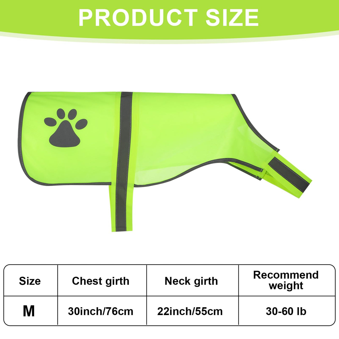 This High Visibility Vest For Dogs Is Brightly Colored And Has Reflective Stripes. &Nbsp;It Is Suitable For Environments With Little Light Or Darkness. The Bright And Vibrant Colors Help Attract The Attention Of Passers-By And Vehicles.Easy To Wear, With Adjustable Closures On The Neck And Chest, It Will Not Cause Your Dog Any Discomfort And He Can Play Happily Outdoors.Specification:Material: 300D Oxford Fabricsize: Mchest Circumference: 76 Cm / 30 Inchneck Circumference: 55 Cm / 22 Inchsuitable For Weight: 30-60 Poundspacking List:1 X High Visibility Safety Vest For Dogsnote:Manual Measurement, There Will Be A Little Error.The Color May Exist Slight Difference Due To Different Screen Display.