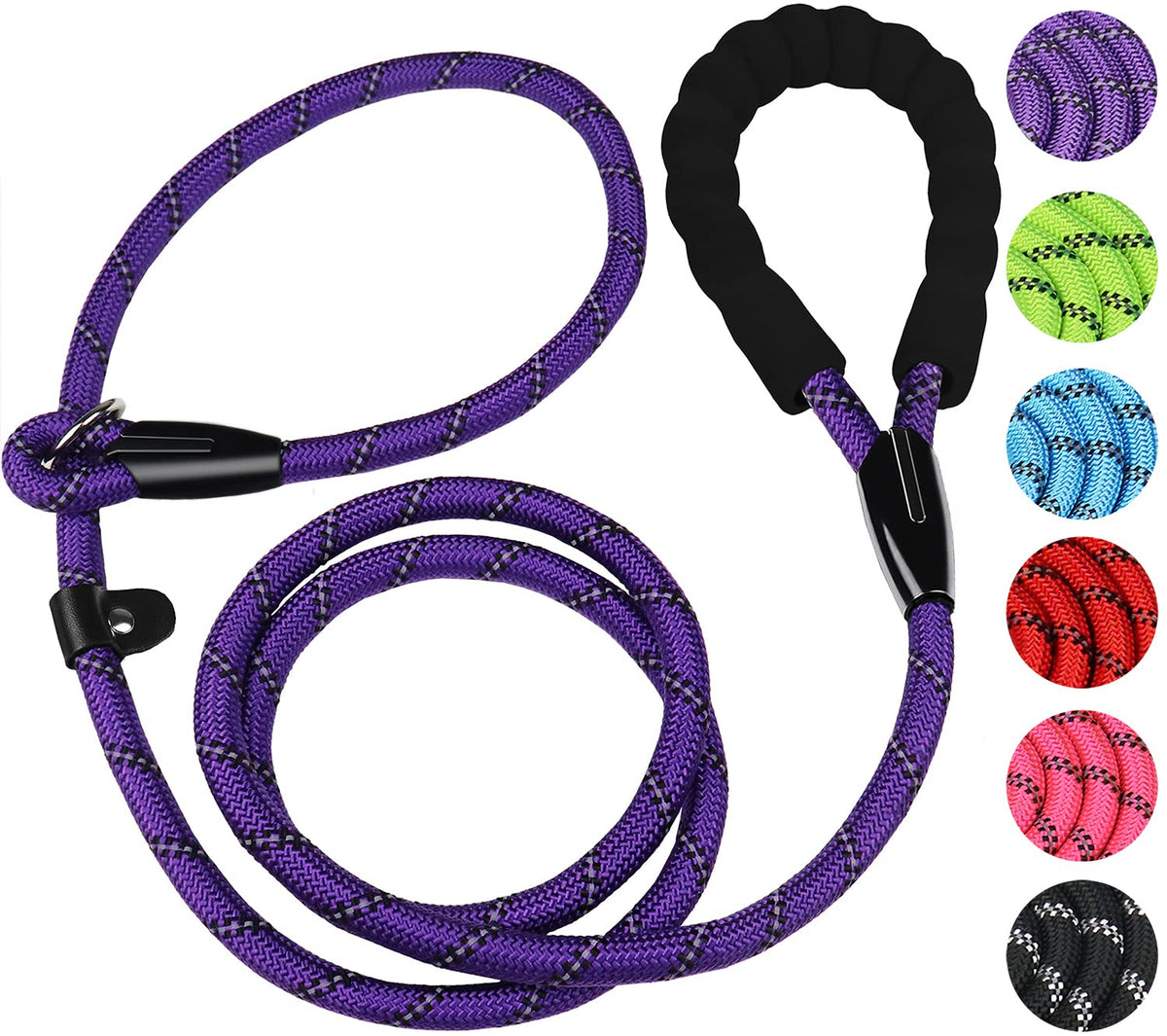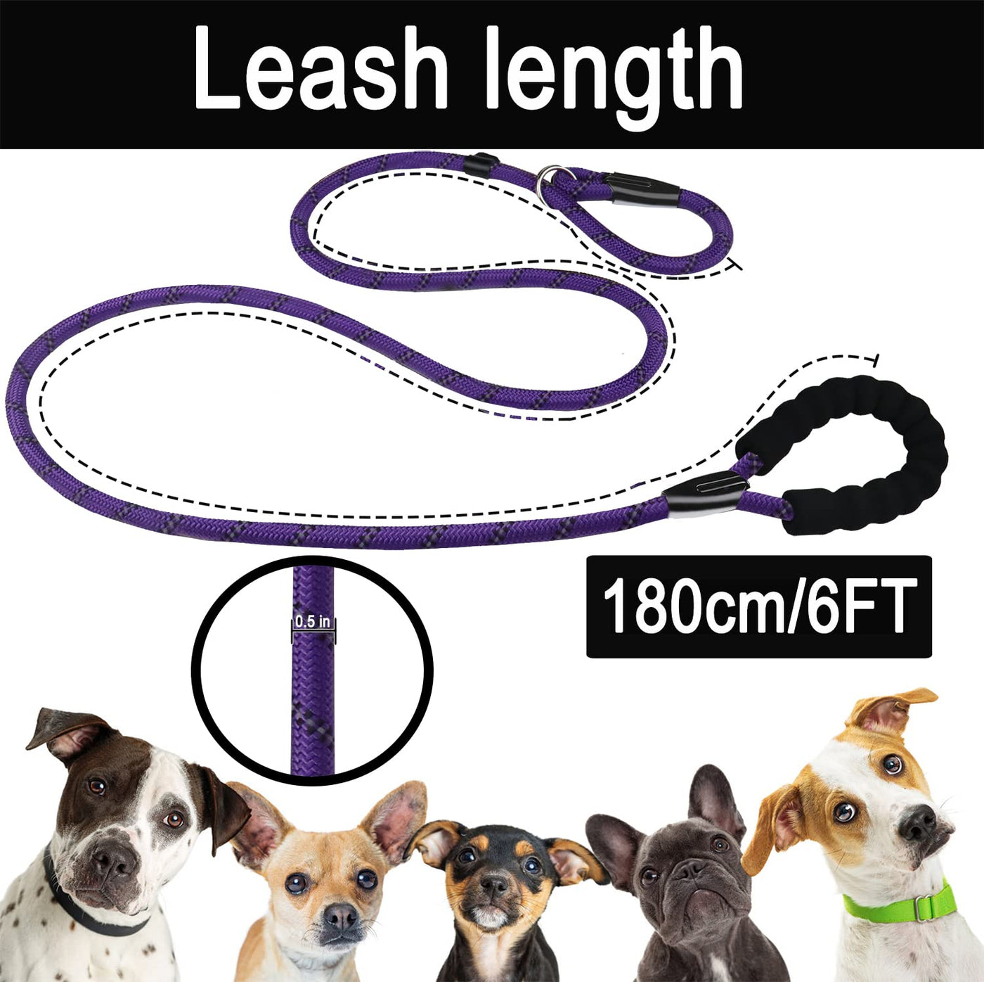 Booeudi 6 Foot Durable Dog Rope Leashdesigned For Comfort & Conveniencethis Slip Leash Acts As A Leash And A Collar In One. Simply Slip The Loop Over Your Dogs Neck And Use The Handle End As A Leash. Leash And Collar In One Combination That Is Great For Walking, Running And Trainning. Give Enough Freedom To Your Dog And Everything Absolutely Under Your Control.Padded Foam Handlepadded Foam Handle Provide A Very Comfortable Grip.High Quality Reflective Nylon Climbing Ropevery Durable, Increasing The Safety Of Night Travel Lead And Collar 2 In 1This Slip Lead Dog Leash Made With High-Quality Nylon Rope And Leather Clips And Slider, Hand Feel Soft And Comfortable, Lightweight Yet Durable. No Collar Or Harness Needed.Slip Lead Rope Leashthis Rope-Style Slip Leash Easy Adjustable To Fit Any Neck Size, And Help Dogs Learn How To Walk Properly. Simple And Easy Of Use. Great For Small Medium Dogs Walking, Training.Durable Sewingprofessional Sewing Machine Double Stitching,The Seam Will Not Break Even If The Rope Breaks.Enhanced Hard Plastic Coverthis New Designed Cover Will Not Fall Off Easily, No Smell, No Glue And Much More Durable & Bite-Resistant.Great Large Dog Leash For Outdoor Sports Such As Hiking, Camping, Training, Hunting, Backyard, Beach, Mountain Climbing, Walking, Running, And So On. Now You Can Take Your Pets With You On All Kinds Of Adventures.Colors: Blacksize: 6Ft In 1/2 Inch Diameter.Note: This Rope Dog Leash Mainly Designed For Medium Or Large Dogs, Please Choose 1/3'' Version For Small Dogs.
