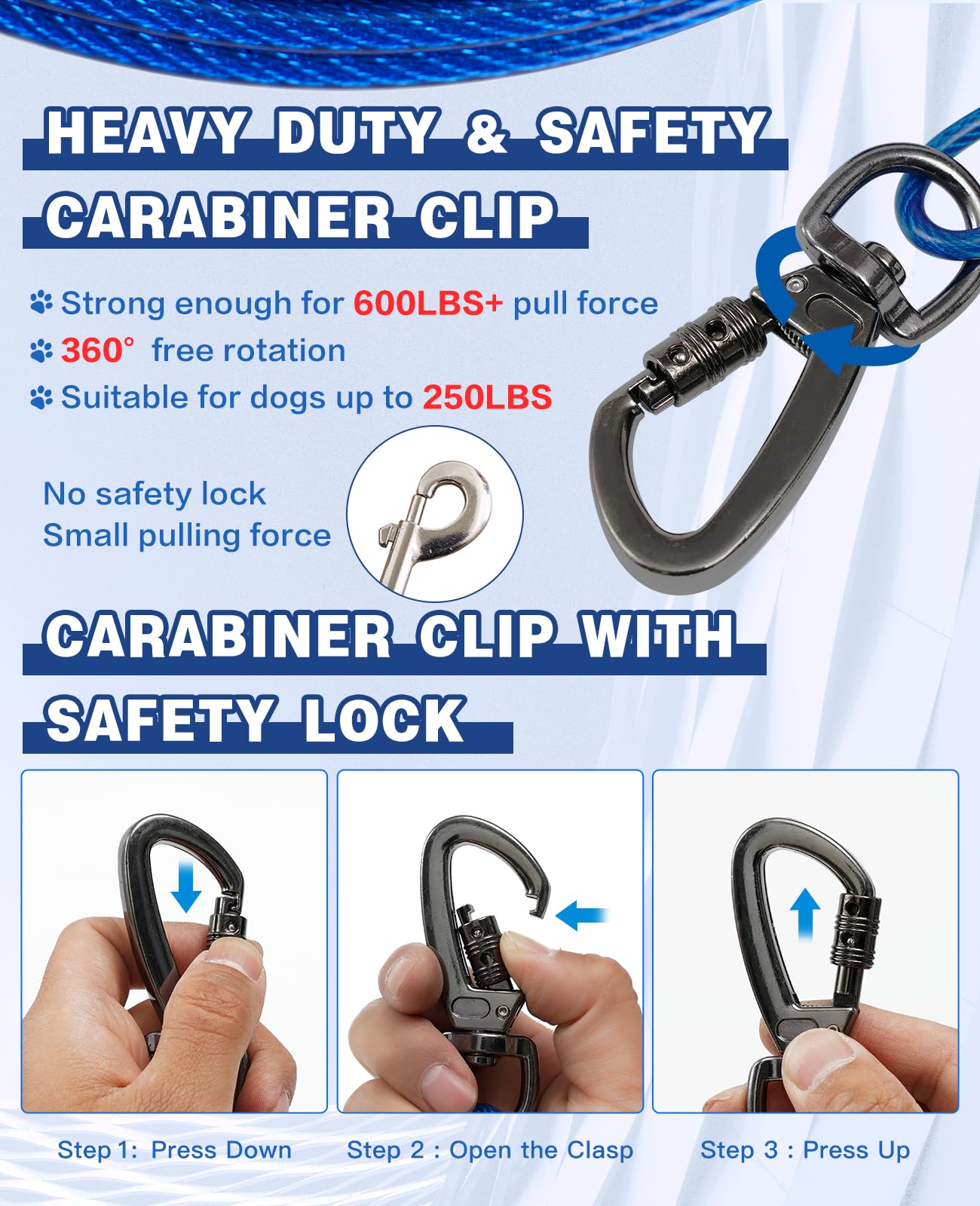 Dog Runner for Yard,Double Shock Absorption Dog Trolley System for Large Dogs,Heavy Duty 100FT Dog Tie Out Run Cable with 10FT D