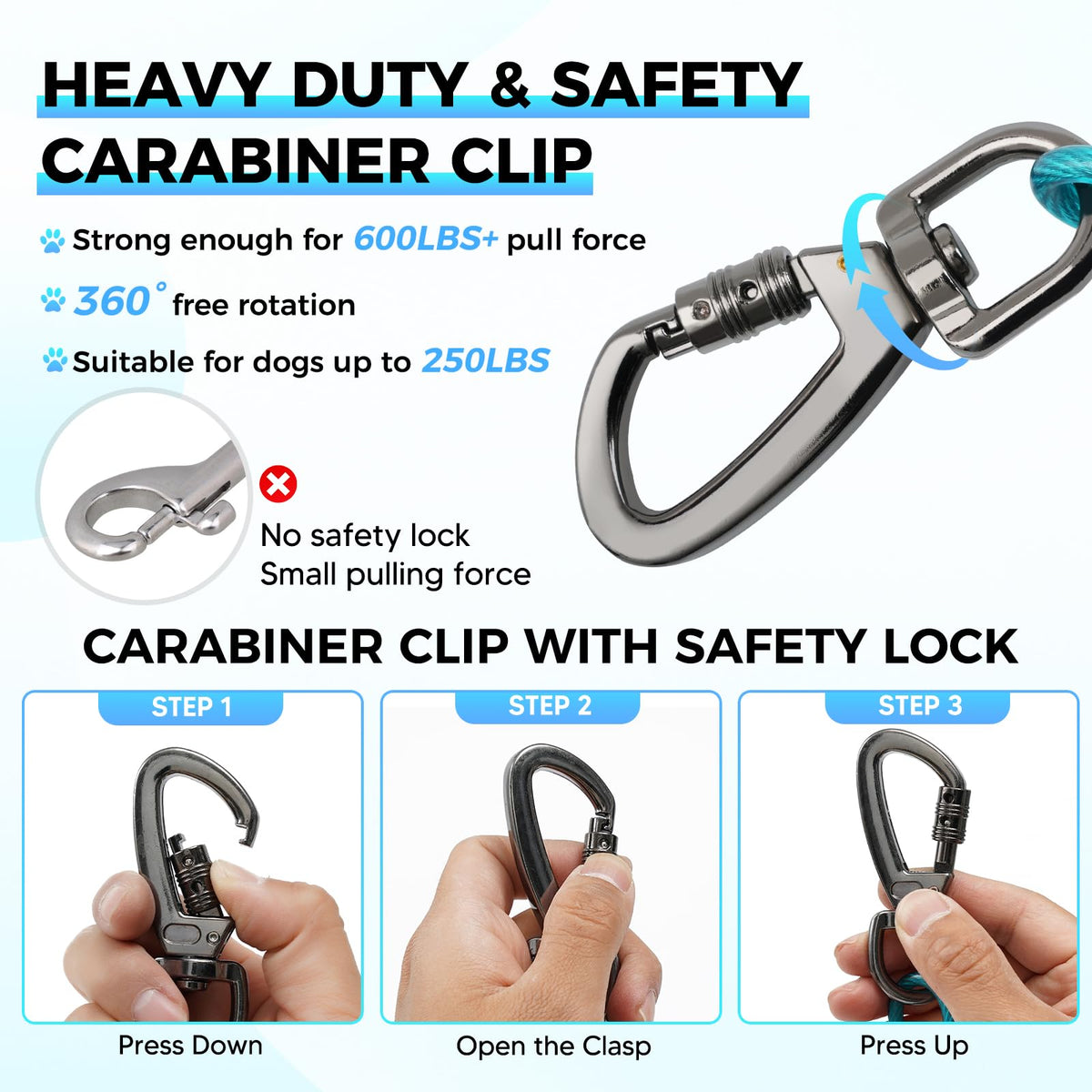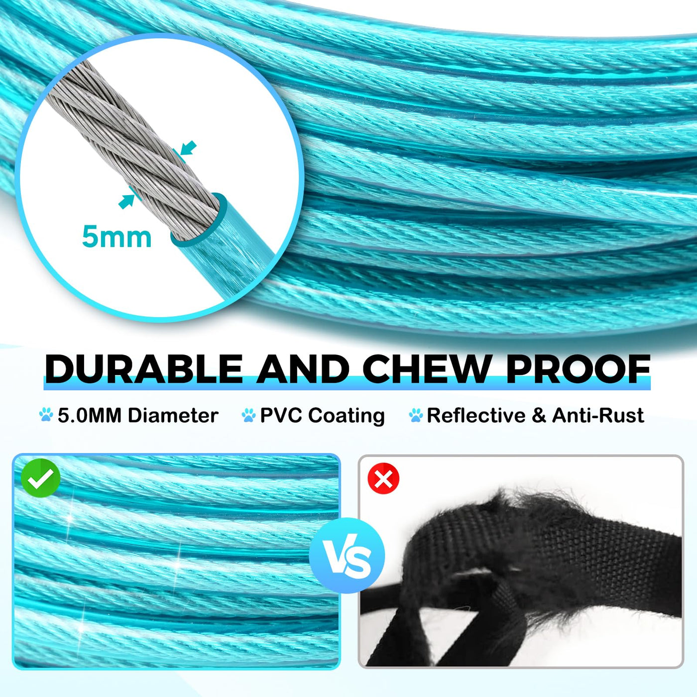 The Dog Runner with Double Shock Absorption is designed for active dogs who love to run and play outdoors. Featuring a 10ft heavy-duty steel cable with two shock-absorbing springs, it effectively reduces the risk of injury caused by sudden movements. The springs work together to cushion the impact as your dog runs, offering a safer and more comfortable experience. This dog runner includes a heavy-duty locking hook to ensure that your dog remains securely attached to the cable, even during vigorous activity. The safety lock prevents accidental escapes, making it perfect for outdoor adventures without worrying about your dog running off. The 5mm thick anti-bite steel cable is built to withstand chewing, unlike traditional nylon leashes that can easily be damaged by aggressive chewers. The durable steel wire ensures that the dog runner will last longer, even with the most energetic pets. For added convenience, the swivel pulley system allows your dog to move freely and safely. The pulley helps prevent tangling, giving your dog more space to run and explore without being restricted. This design is perfect for large backyards,parks, or any open outdoor area where your pet loves to roam. Installation is a breeze with this dog runner. It comes with all the necessary components and a detailed instruction manual, making setup quick and hassle-free. Whether you're new to dog runners or an experienced pet owner, this system will have you and your dog ready for adventure in no time. Ideal for dogs of all sizes, the Dog Runner with Double Shock Absorption ensures that your pet enjoys more freedom while staying safe. Perfect for outdoor play, training, or simply enjoying the great outdoors together!