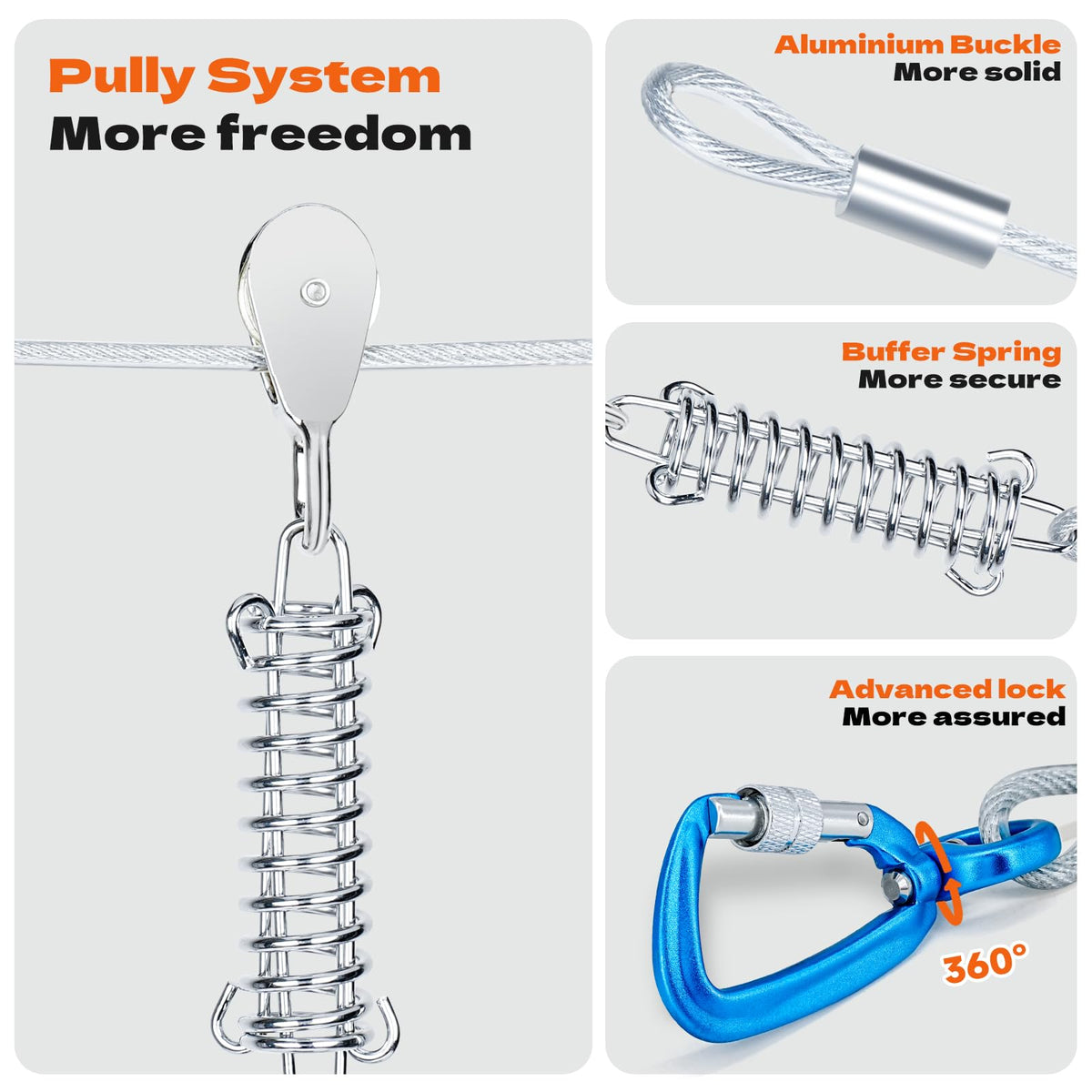 Dog Runner For Yard Large Dog Heavy Duty 50Ft With Double Shock Absorbers Tangle-Free Aerial Trolley System For Large Dogs Up To
