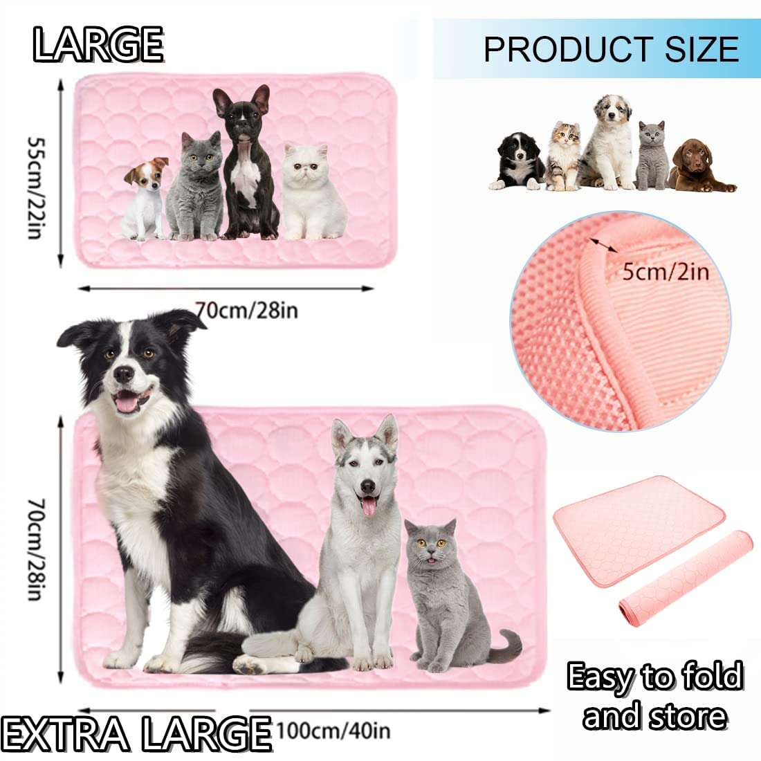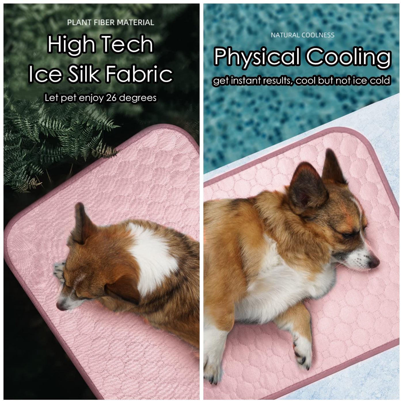 Dog Self Cooling Mat Pet Washable Summer Pads Blanket Hot Weather Sleeping Kennel Mat,Ice Silk Sleep Mat Pad Non-Toxic Breathable Sleep Bed For Large Dogs Cats No Water 27.5 X 39.4 Inches,Pink