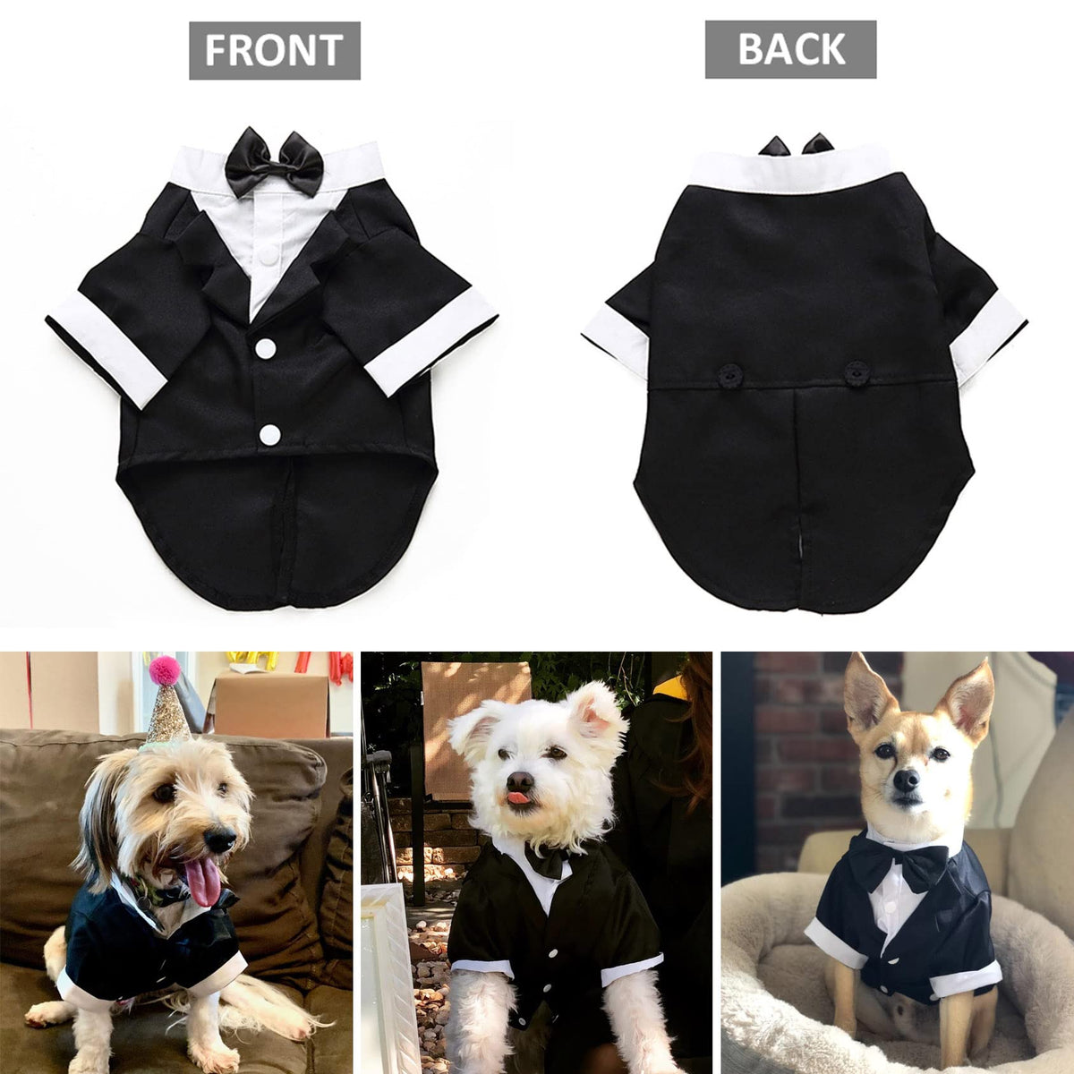 Dog Shirt Puppy Clothes, Pet Wedding Suit Formal Tuxedo With Black Bow Tie, Dog Outfit For Small Medium Dogs Cats, Dog Weding Attire Dress Up Cosplay Prince Costume Gentleman Apparel (Small, Black)
