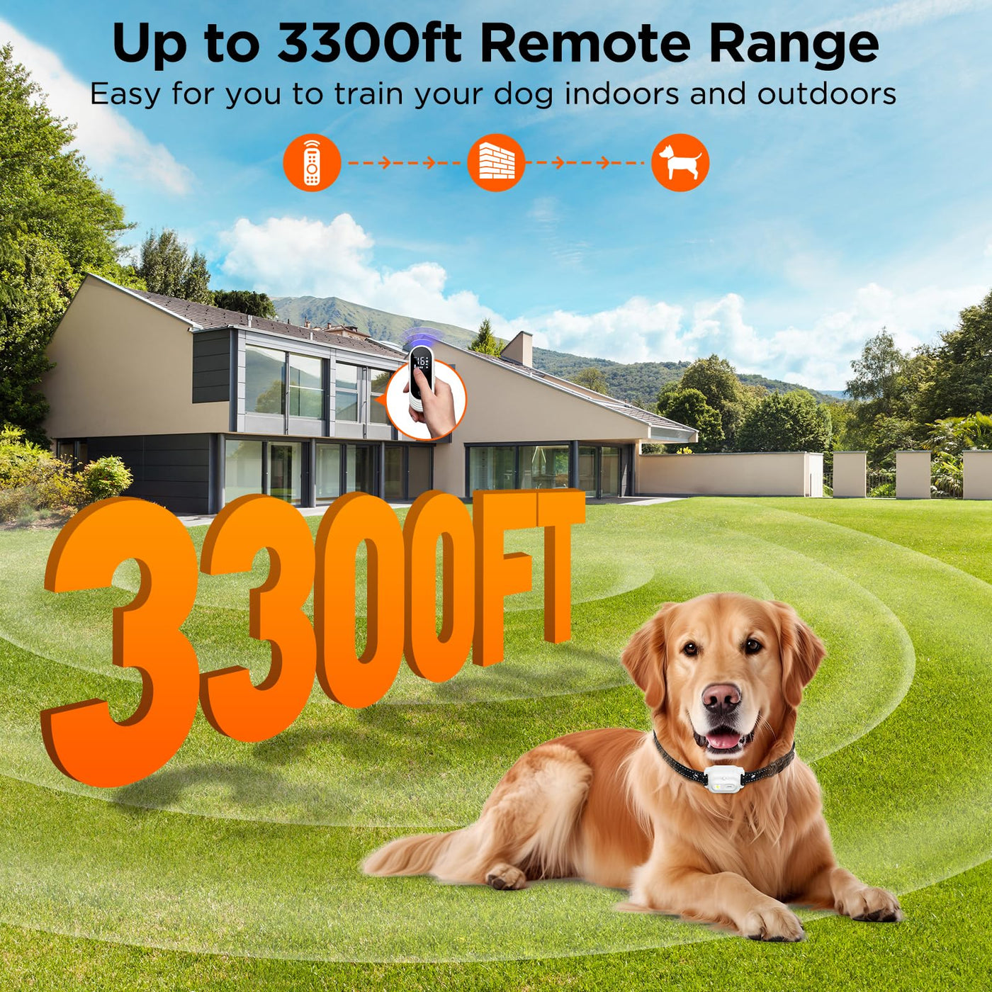 Dog Shock Collar, 3300Ft Dog Training Collar With Remote, Ipx7 Waterproof Rechargeable Electronic Training Collar For Small, Medium, Large Dogs With Beep, Vibration, Safety Shock Light Mode -8-120 Lbs