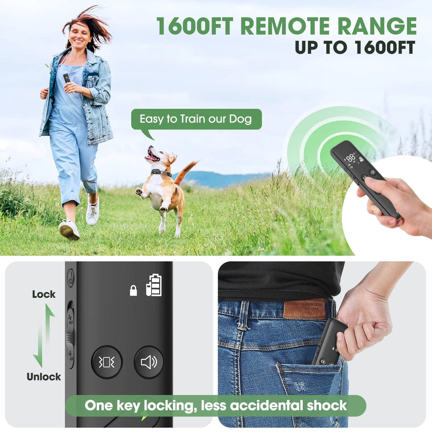 Dog Shock Collar - Electric Dog Training Collar With Remote 1600Ft, Rechargeable E-Collar Waterproof Collars With 3 Training Modes, Security Lock For All Breeds, Sizes