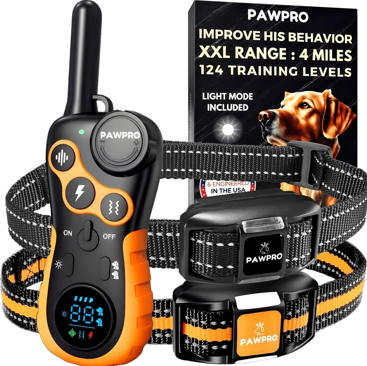 Dog Shock Collar With Remote, Unmatched 4-Mile Range, Night-Light Mode, Training Guide Included, 124 Training Levels & 4 Modes,