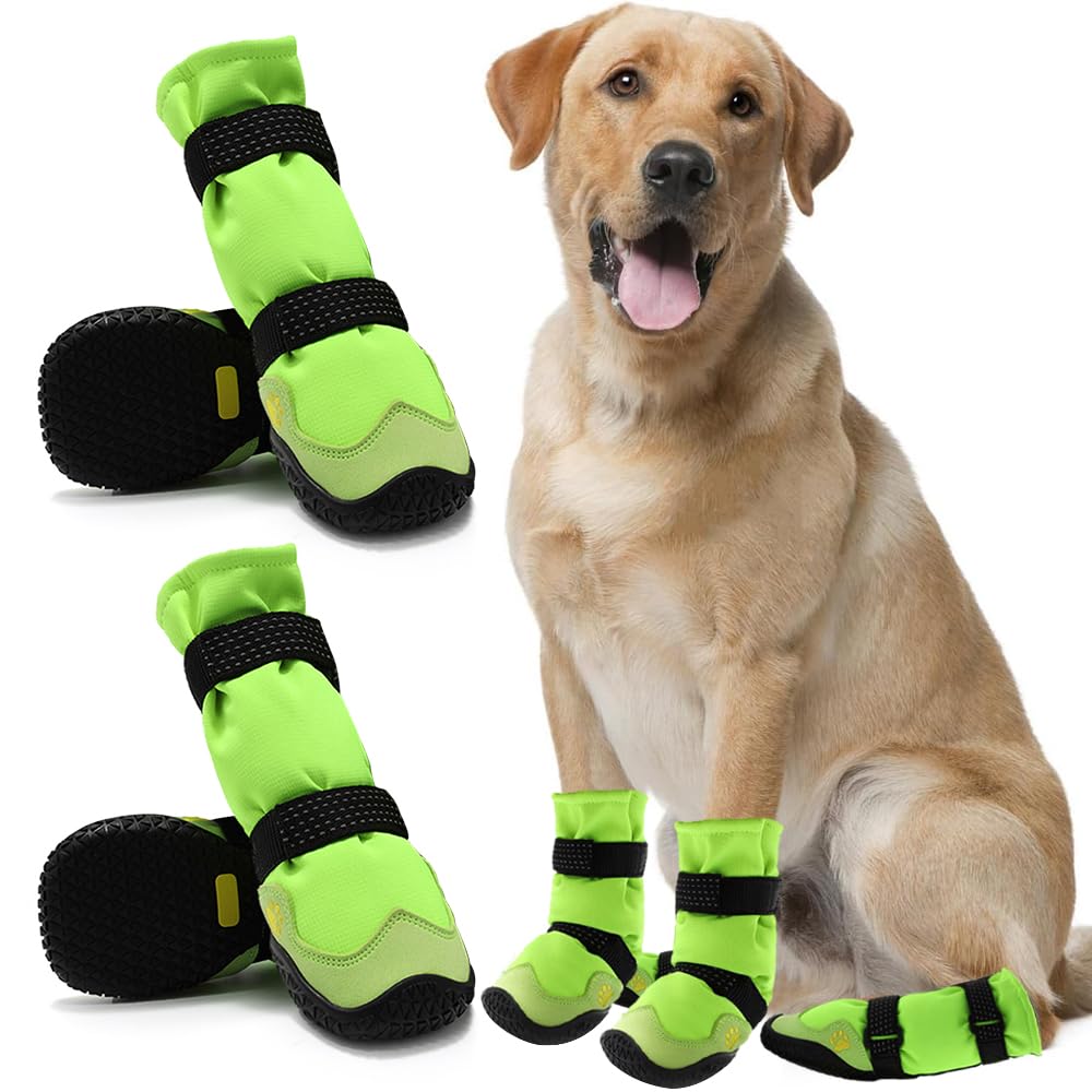 Warm Tips:''1. Dog Boots Can Keep The Dog'S Paws Warm And Dry In Cold Winter. Easy To Put On / Off. These Dog Shoes Expand With A Wide Split Seam Opening And Two Adjustable And Reflective Straps To Ensure A Tight Fit, Also Make Your Dog Safe At Night. 2. Anti-Slip Dog Shoes For Old Dogs, Cute Shoes For Hot Pavement Can Protect The Dog'S Paws From Being Burnt In Hot Summer. The Dog Boots Have A Rugged Sole And High-Quality Fabrics That Are Then Sewn Together To Ensure They Are Ready For Your Adventure. 3. Large Big Dog Shoes For Winter On Hard Pavement Can Prevent Dogs From Scratching Carpets Or Wooden Floors, Tough Anti-Slip Sole Of Dog Boots Provides Stability And Traction, Protection From Sharp Thorns, And Icy Pavement. 4. Dog Shoes For Big Dogs Can Protect The Dog'S Paws Against Hurt From Stones, Asphalt, And Grass While Walking.Hiking.Running. 5. Waterproof Dog Shoe Clearance Can Keep The Dog'S Paws Clean And Dry On Rainy Days. Dog Boots Are Cute Pet Paw Embroidery, Paws Side At Outside, Soft, And Hand Washable.'' How To Choose Size? 1. Place The Paw On A Piece Of Paper And Press Down On The Top. 2. Mark The Left And Right Sides On The Paper And Measure The Distance Between The Marks. 3. Choose Size According To Width Is Better, The Width Of The Paw Should Be Smaller Than The Boot Size Chart. 4. The Size Is The Inside Size Of The Boots, Not Boots Size Outside, In Between Size, Please Choose The Larger Size. 5. We Suggest You Use Foot Breadth First And Foot Length Second Before Choosing The Size. 6. Pet Dog Might Experience Some Discomfort The First Time He Wears The Pet Shoes. You Could Help Him With Some Simple Training. Wide Application Cold Winter--These Dog Shoes Can Keep The Dog'S Paws Dry, Warm And Clean In Cold Winter, Dogs Can Play As Much As They Want Without Frostbite Their Paws. Hot Summer--The High-Quality Fabric Makes These Boots Protect The Dogs Paws From Being Burned In The Hot Summer.