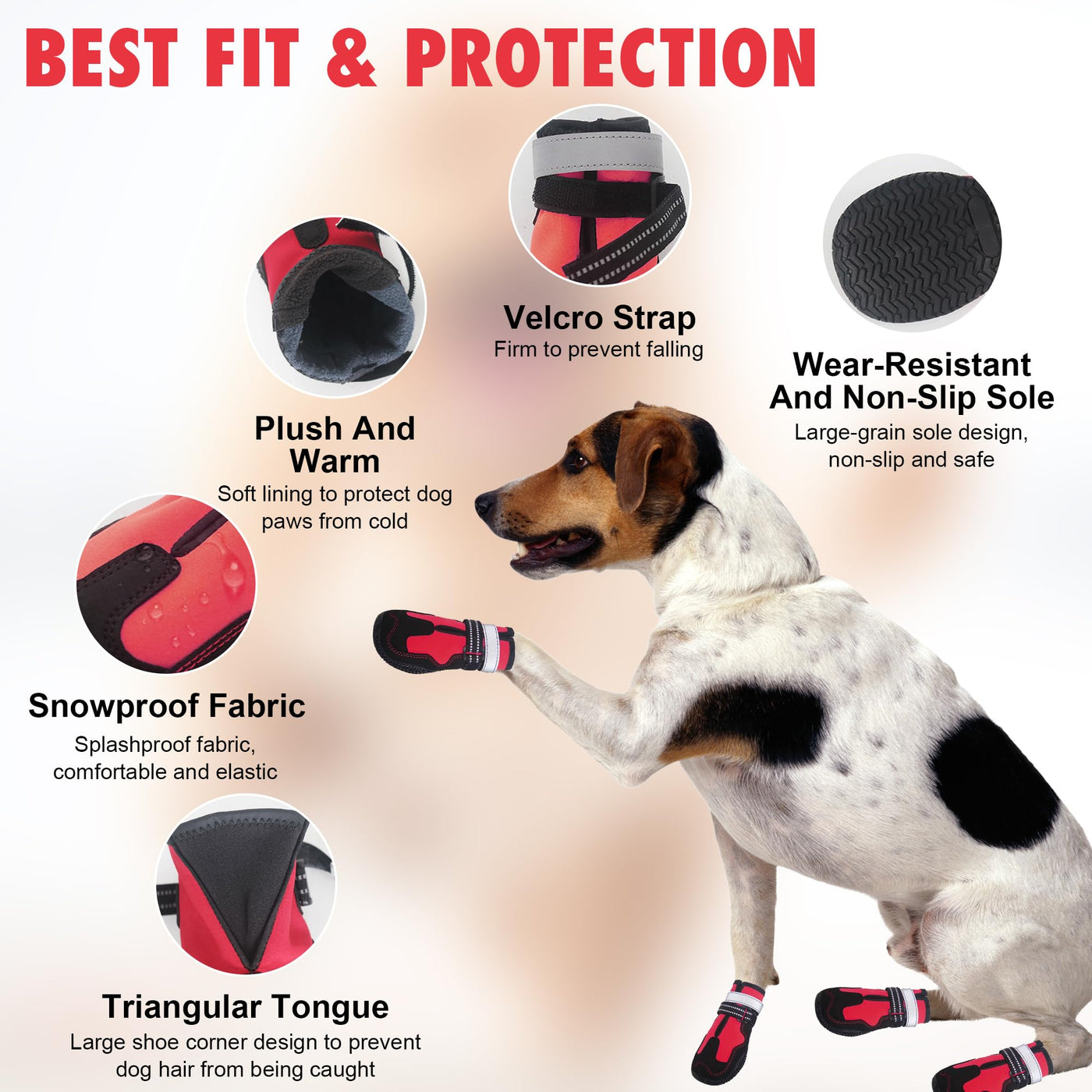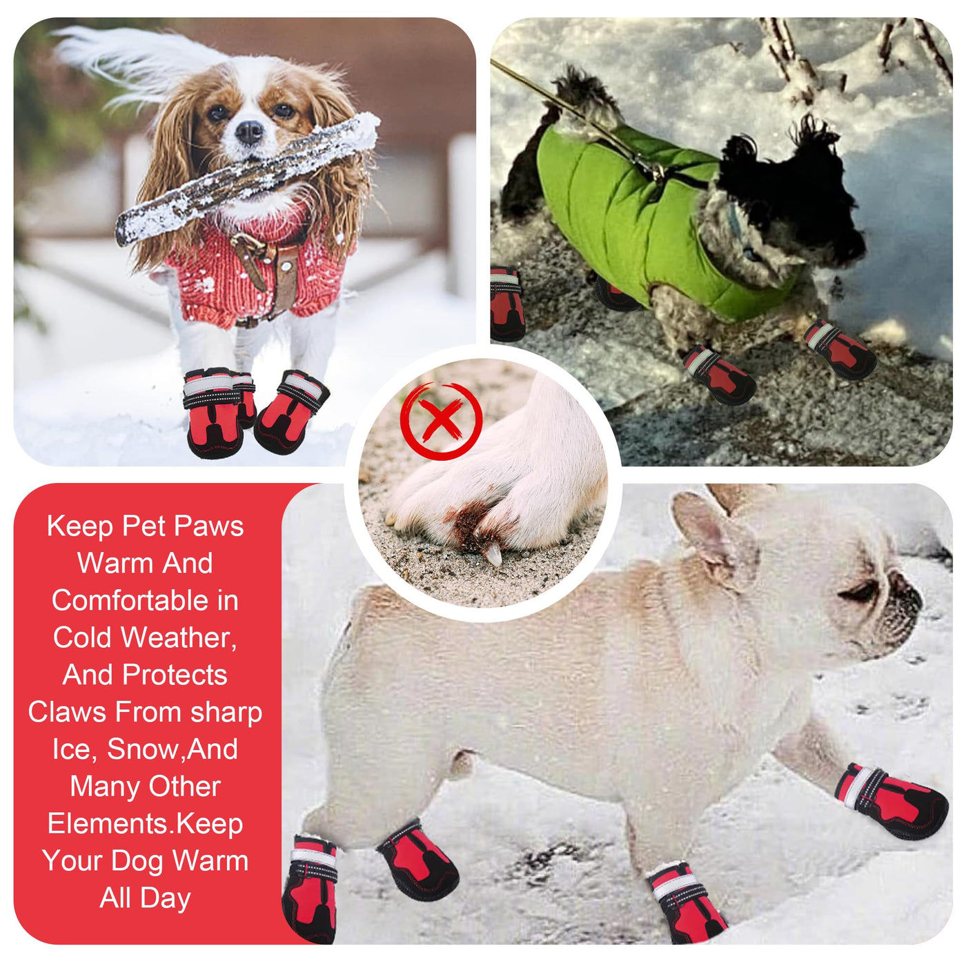 Dog Shoes For Large Small Medium Dogs Warm Non-Slip Protective Dog Boots For Winter Cold Pavement Waterproof Cotton Paw Protecto