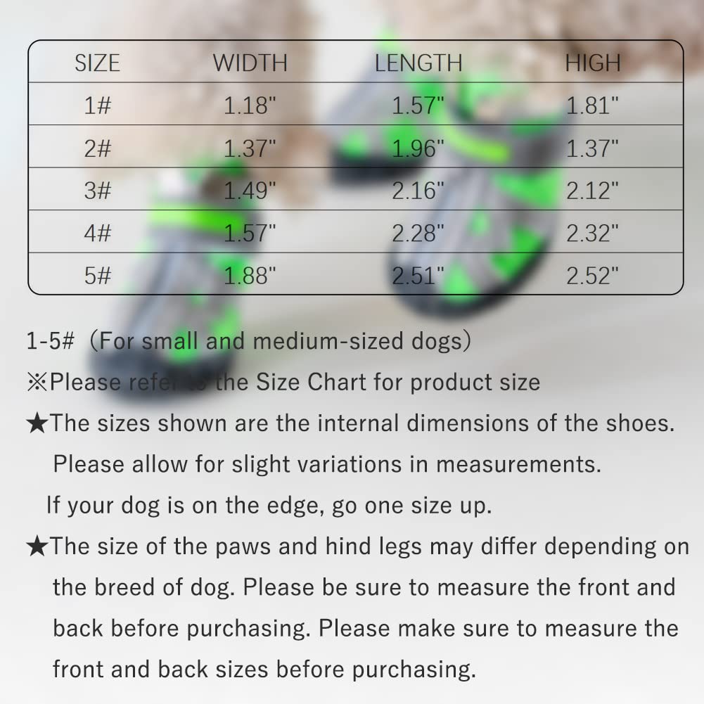This Is A Good Protector Of Dog Paws. Daily Walking,Protect The Dog'S Paws Against Hurt From Salt, Burrs, Hot Pavement, Etc. In House,Prevent Dogs From Scratching Carpets, Wooden Floors And Sofas, Help Dogs Walk Inside On The Hardwood. The Dog Cannot Lick The Wound, Which Can Speed Up The Healing Of The Injured Paw. Reference Sizes: Size 1:(1.57 'X1.18'X1.81 )(Lxwxh) Size 2:(1.96'X1.37'X1.92 )(Lxwxh) Size 3:(2.16'X1.49'X2.12 )(Lxwxh) Size 4:(2.28'X1.57'X2.32 )(Lxwxh) Size 5:(2.51'X1.88'X2.52 )(Lxwxh) Methods: Place Your Pet'S Paws On Paper; Mark The Width Of The Paws, Including The Toes And Nails; Use The Widest Measurement. Please Refer To The Picture Size Chart, Choose The Right Size For Your Puppy.