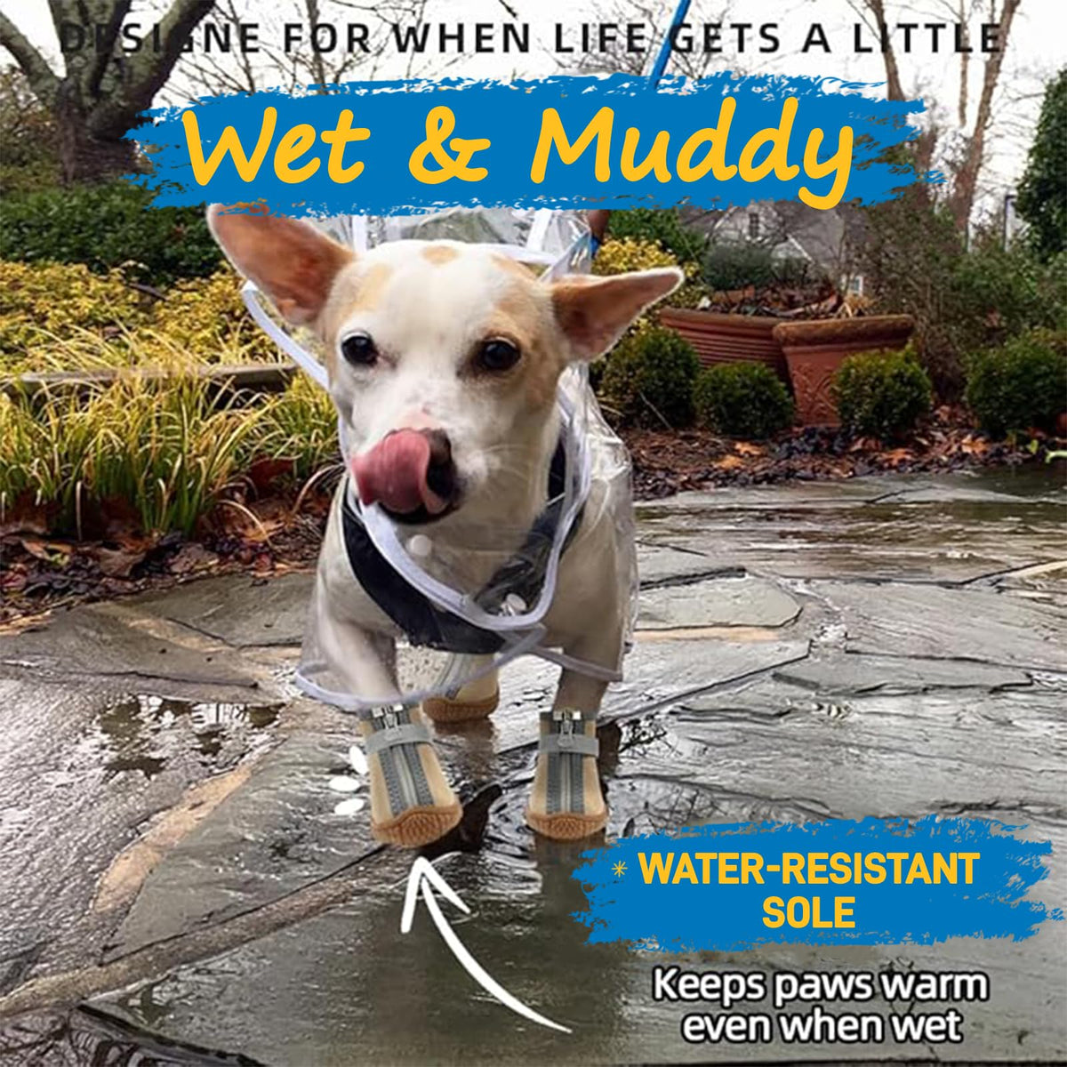 Dog Shoes For Small Dogs Boots, Waterproof Dog Booties Paw Protector For Outdoor Walking, Puppy Shoes With Reflective Strips Rugged Anti-Slip Sole For Hardwood Floors Hot Pavement Winter Snow 4Pcs/Set