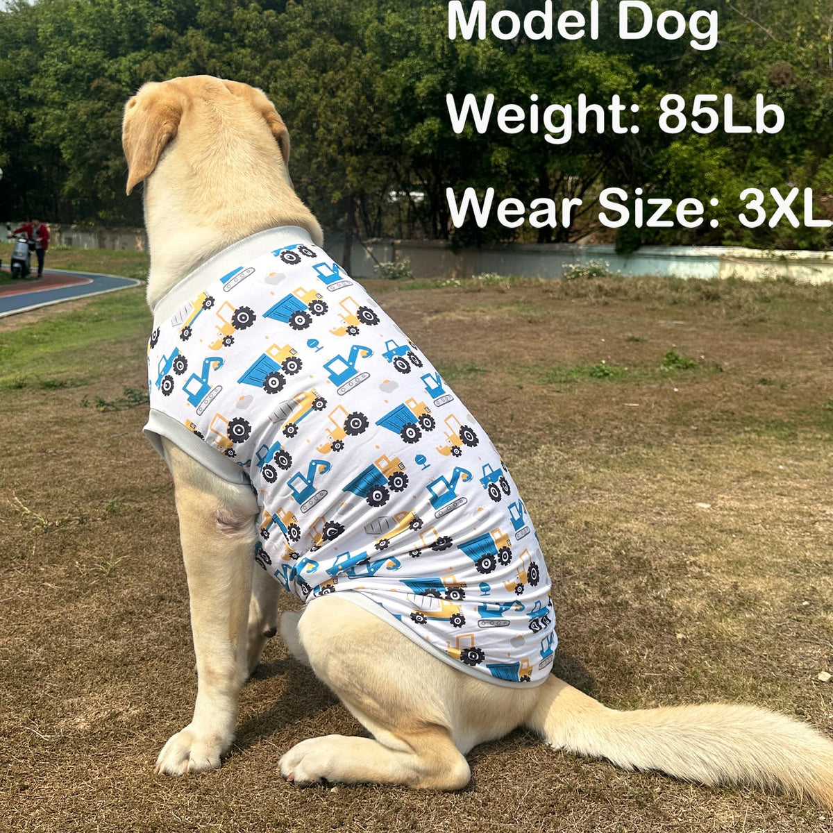 Dog Sleeveless T Shirt Excavator Prints Vest Shirt Soft Stretchy Summer Clothes For Large Dog Boys Girls Shirt Large,White