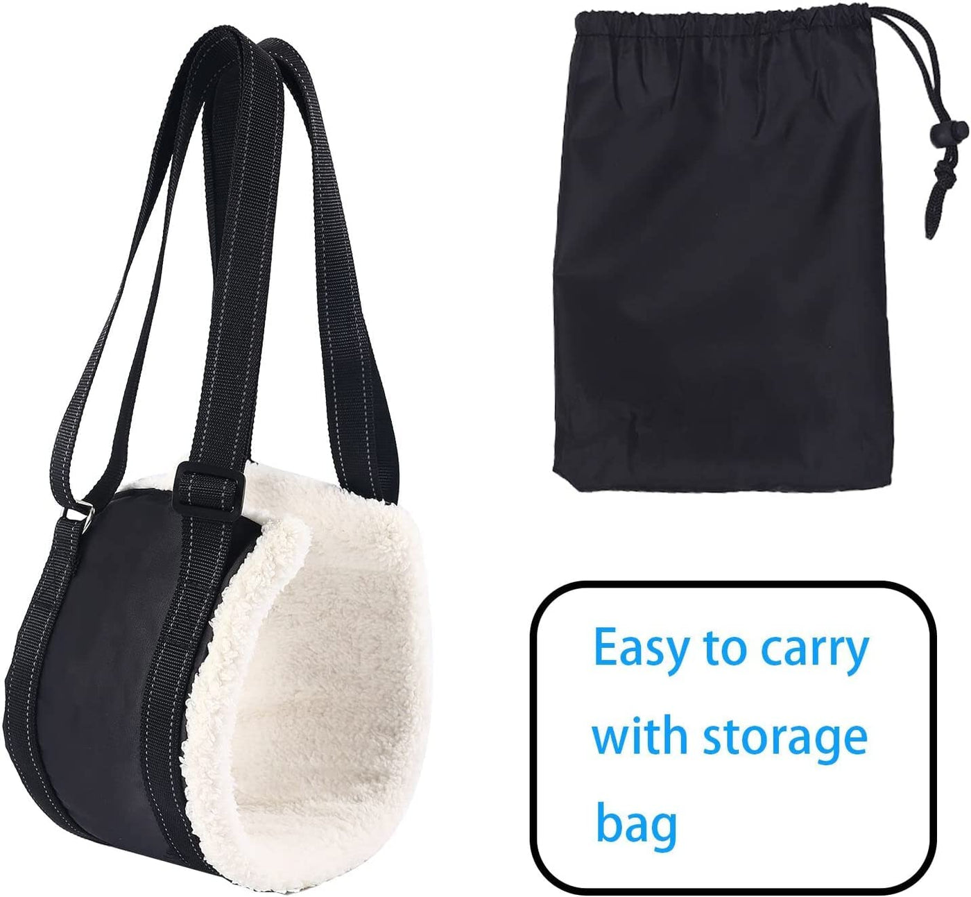 Q: Is the dog sling easy to carry and store?A: Yes, the dog sling is lightweight and can be easily folded into a compact size for storage in the included portable gift bag, making it convenient for travel and everyday use.