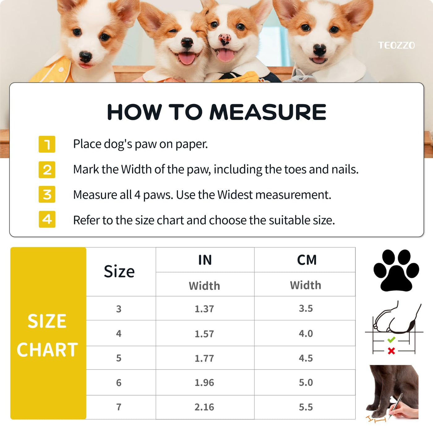 Teozzo Dog Boots &Amp; Paw Protectors Details:&Nbsp;1.&Nbsp;The Dog Shoes Use A Durable Non-Slip Granular&Nbsp;Sole To Provide Stability And Traction, Helping Pets Maintain Mobility And Stability On Tiles And Sand. Effectively Protect Dog Paws From Harm.2.&Nbsp;This Winter Dog Boot, With Super Soft Fleece Inside, Provides Extra Comfort, Keeps Paws Warm In Cold Weather.3.&Nbsp;These Dog Boots Can Also Be Applied In Summer, Protected Dog Paws From Hot Pavement, Stones.4.&Nbsp;Our Dog Paw Protectors Are Not Waterproof But Can Keep Paws Dry, Warm.5.&Nbsp;Reflective Lines Enhance Visibility All Night, Ergonomic Shape, Maximize The Comfort And Support Your Dog'S Paws Need. To Ensure The Safety Of The Dog.