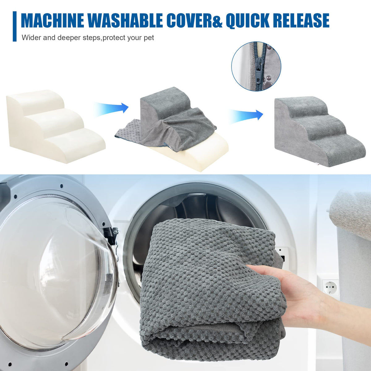 Dog Stairs For Small Dogs - High Density Foam Dog Ramp, Extra Wide Pet Steps With Non-Slip Bottom For High Beds, Couche And Sofa