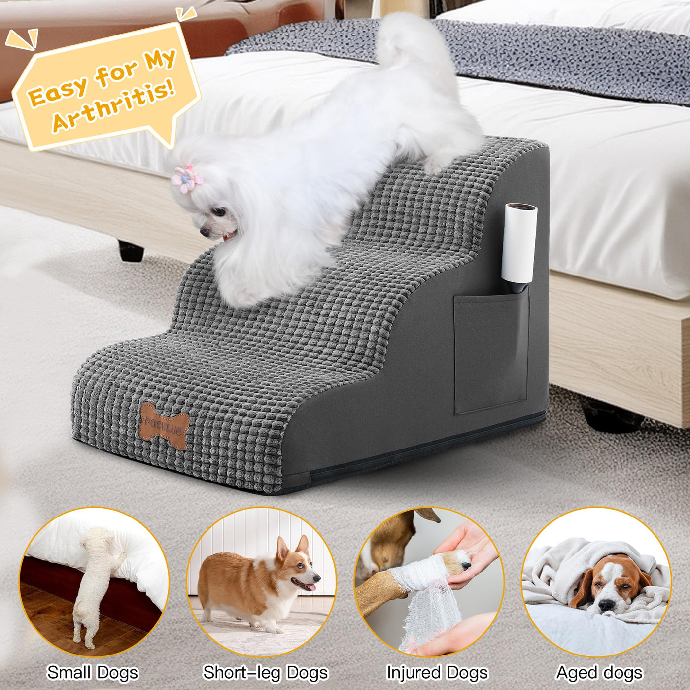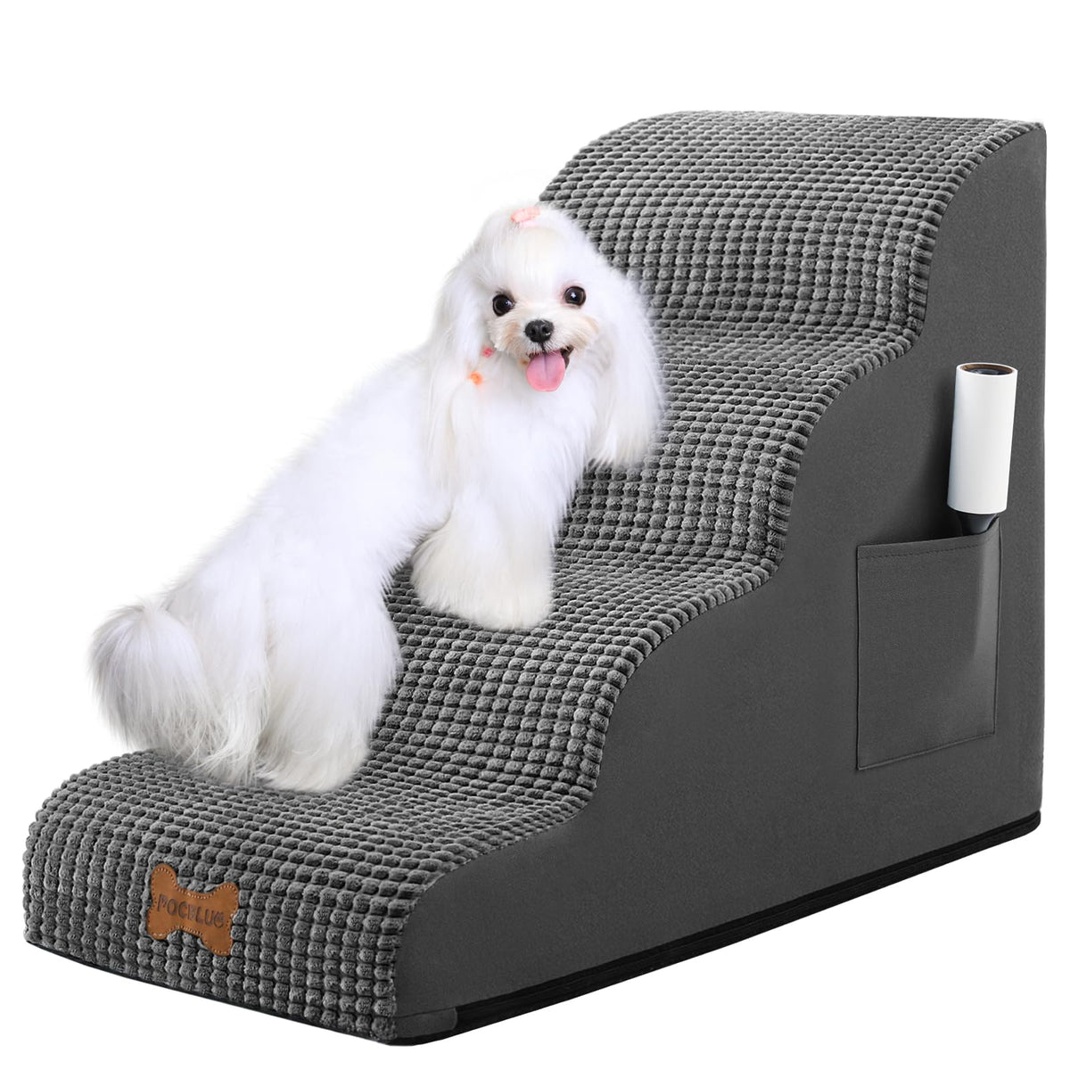 Dog Stairs For Small Dogs, Wide Pet Step With Removable Cover, No Assembly High Density Foam Cat Ramp For Bed Or Sofa, 4-Step, D