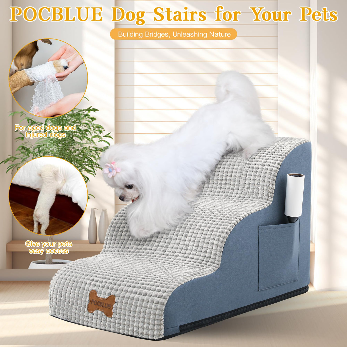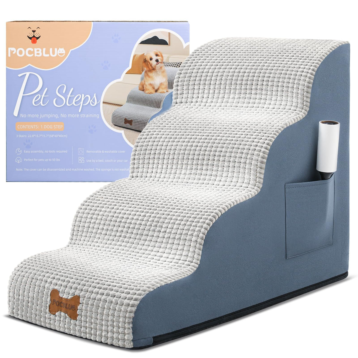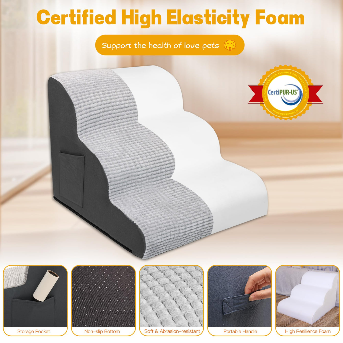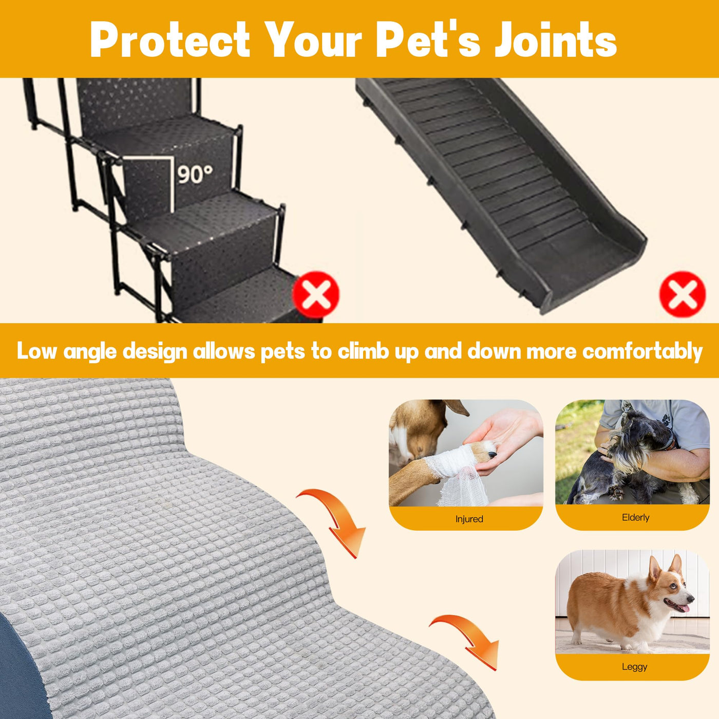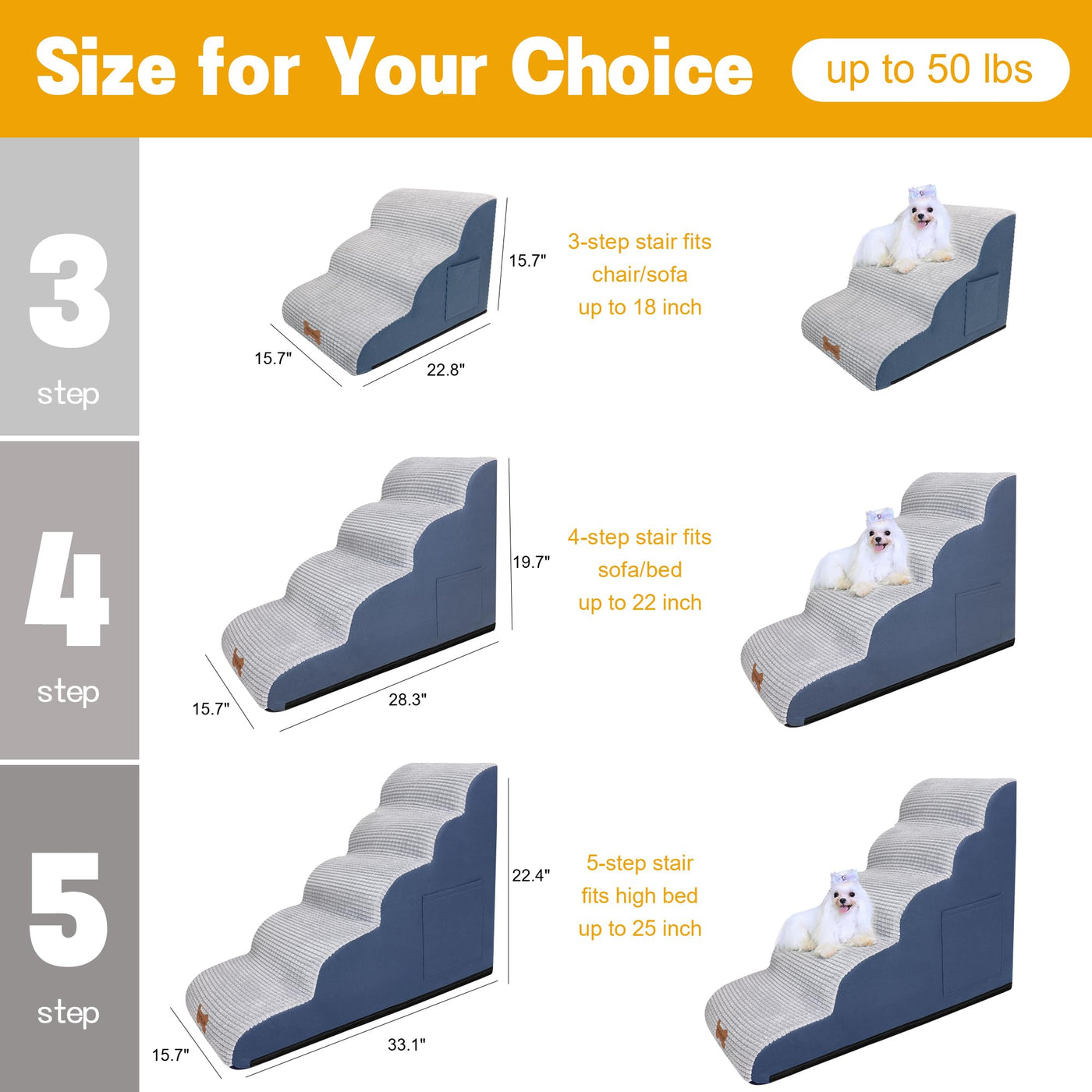 Dog Stairs For Small Dogs, Wide Pet Step With Removable Cover, No Assembly High Density Foam Cat Ramp For Bed Or Sofa, 4-Step, G