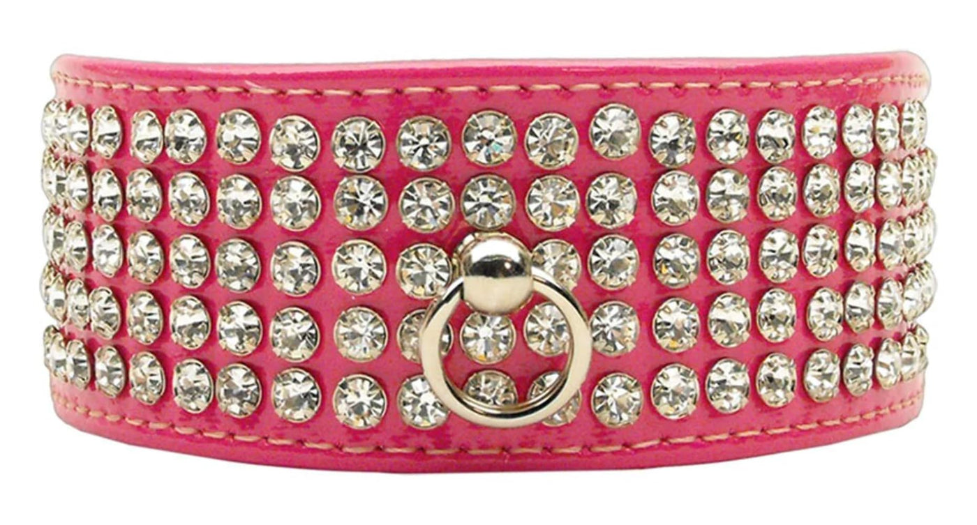 Dog Puppy &Amp; Pet Collar ''Patent Five Row Clear Crystal''We Love The Jewels On This Dog Collar! This 1 '' Wide Glistening Patent Faux Leather Crystal Collar Is Jeweled With Five Rows Of Sparkling Clear Crystals And A Center Post For A Pet I.D. Tag.Be Sure To Reference Our Sizing Chart To Get The Perfect Fit For Your Dog! If Your Pet'S Neck Falls On The Line Between Sizes On Our Chart Choose The Larger One!Thank You So Much For Your Interest In Our Handmade High Quality Dog And Cat Collars And Leashes We Hope You'Ll Love Them! ??