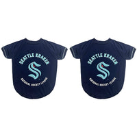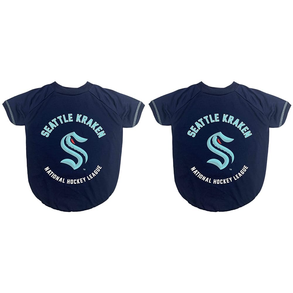 Q: Is this pet t-shirt officially licensed by the NHL?A: Yes, the NHL Seattle Kraken pet t-shirt is officially licensed by the NHL, ensuring that you are purchasing a high-quality product that features authentic team logos and colors.