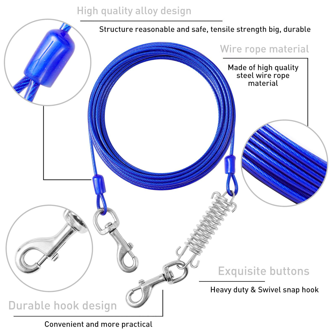 Dog Tie Out Cable And Stake,10Ft Outside Dog Run Cable Leash&Chain With Shock Spring For Camping And Yard, 16'' Heavy Duty Anti