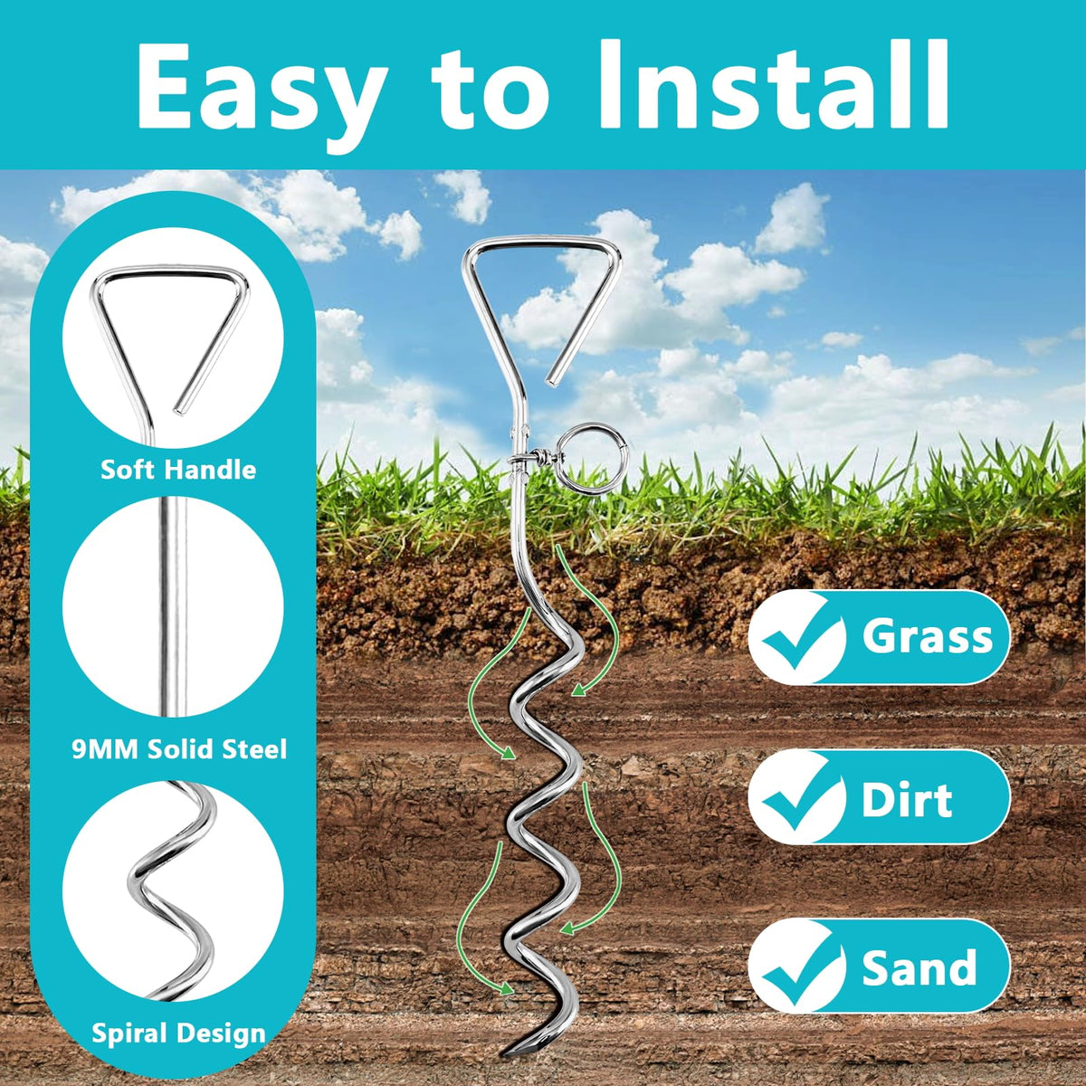 Dog Tie Out Cable And Stake,20Ft Outside Dog Run Cable Leash&Chain With Hand Strap For Camping And Yard, 16'' Heavy Duty Anti Ru