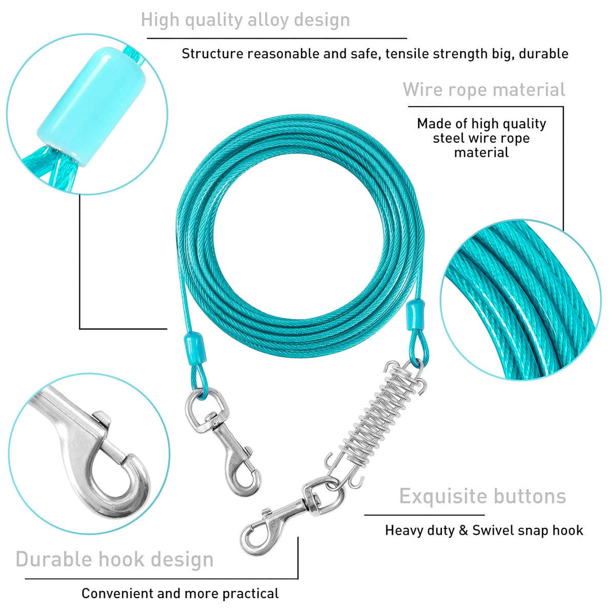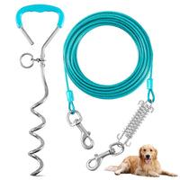 Dog Tie Out Cable And Stake,20Ft Outside Dog Run Cable Leash&Chain With Shock Spring For Camping And Yard, 16'' Heavy Duty Anti