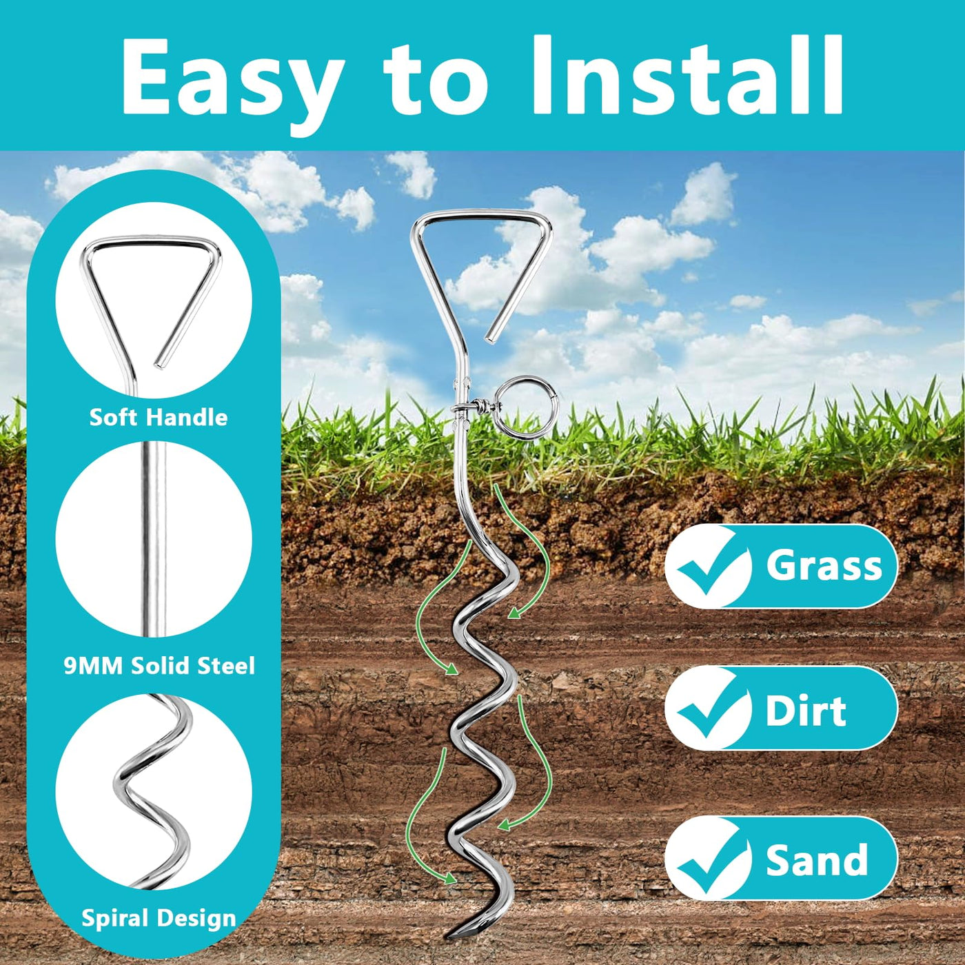 Dog Tie Out Cable And Stake,30Ft Outside Dog Run Cable Leash&Chain With Hand Strap For Camping And Yard, 16'' Heavy Duty Anti Ru