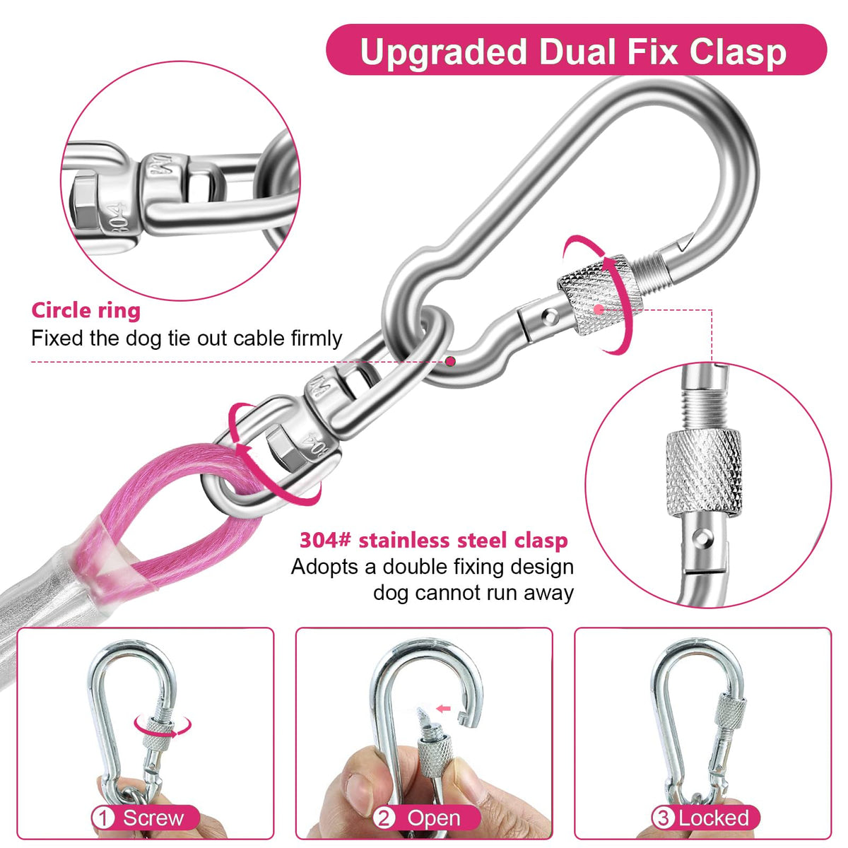 10/15/20/30Ft Dog Tie Out Cable,The Long Dog Leash&Chains Allows Your Dog To Play Freely While Camping, Walking In The Park, Yard And Other Outside Activities. Color:Pink