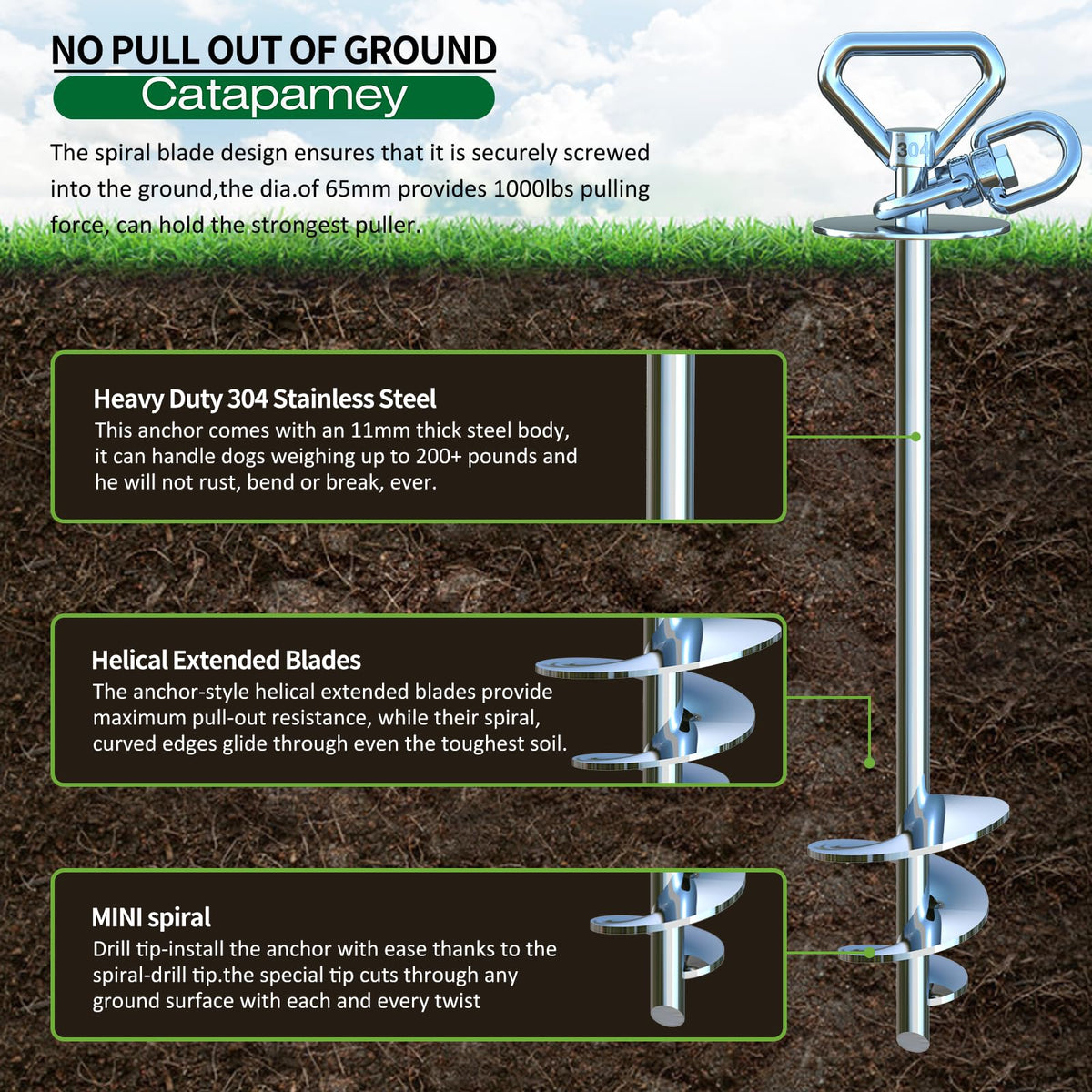 Dog Tie Out Stake,360 Swivel 304 Stainless Steel Dog Run Anchor- Use Any Dog Tie Out Cable Or Yard Leash Chains,Heavy Duty Dog S