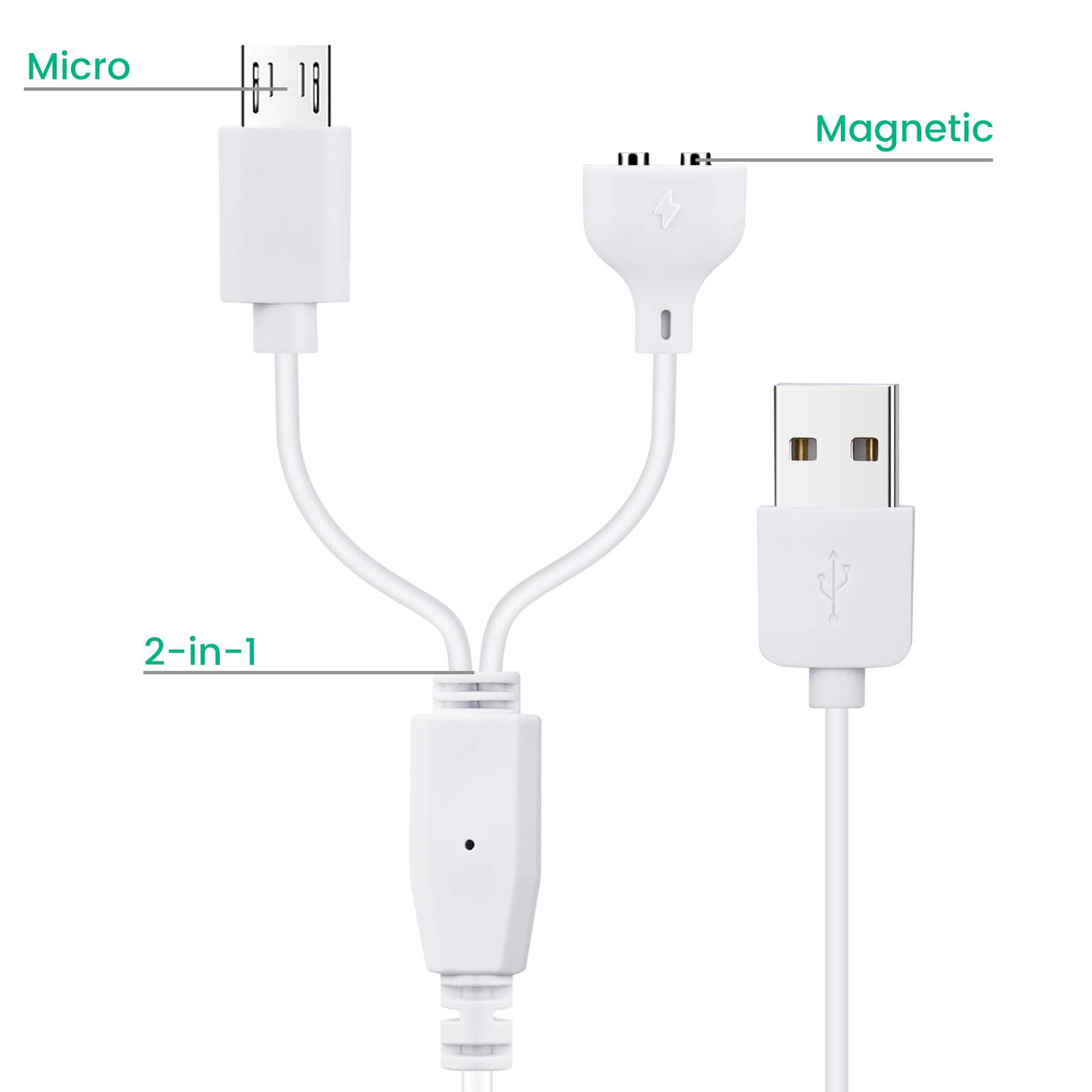 YEAOI Dog Training Collar Charger Replacement, 2-in-1 Magnetic Wire & Micro USB, 2.6 ft, White for NVK & UKE Shock Collars