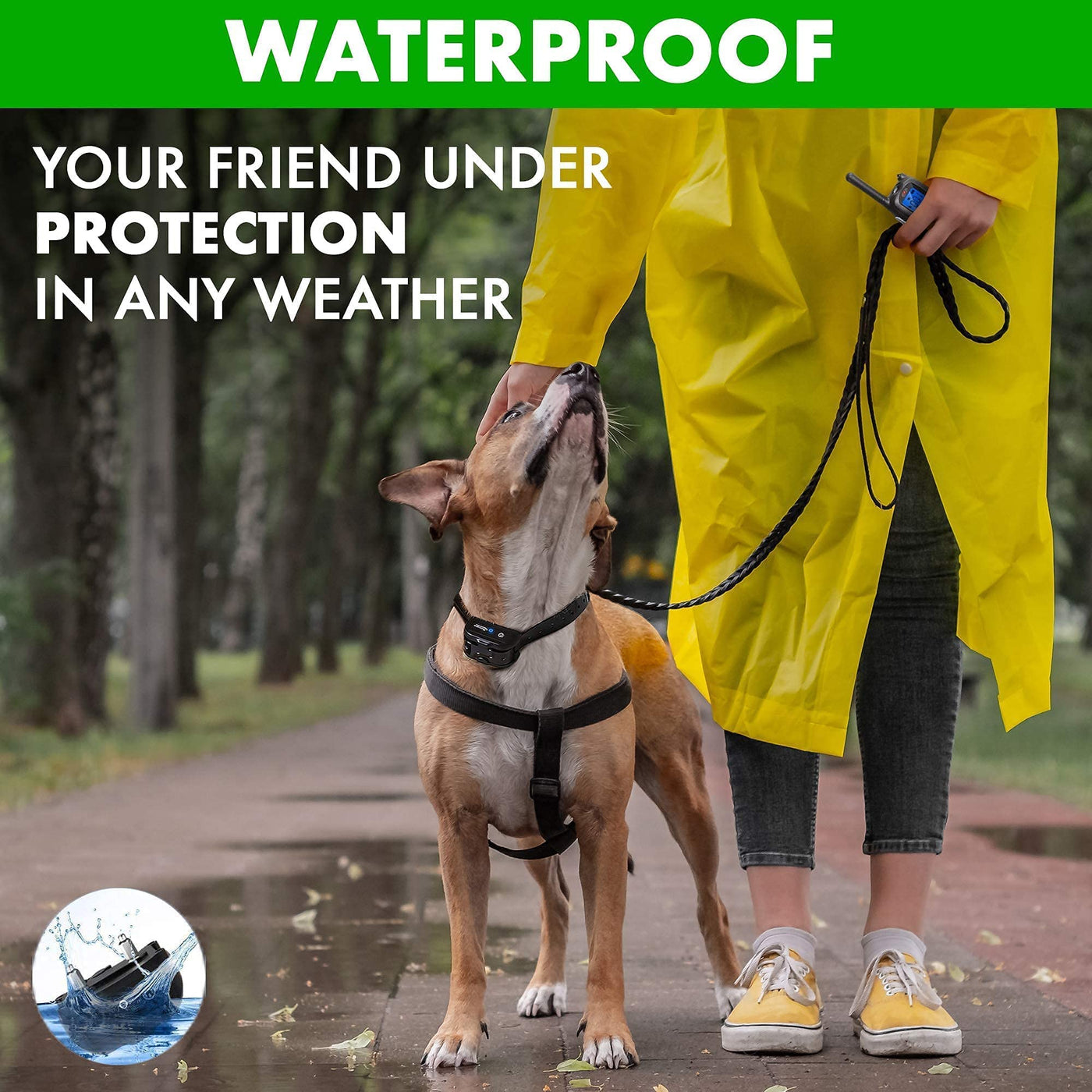 Q: Is the Dog Training Collar waterproof?A: Yes, the receiver of the Dog Training Collar is rated IP67 waterproof, allowing your dog to play safely in the rain and even swim while wearing the collar.