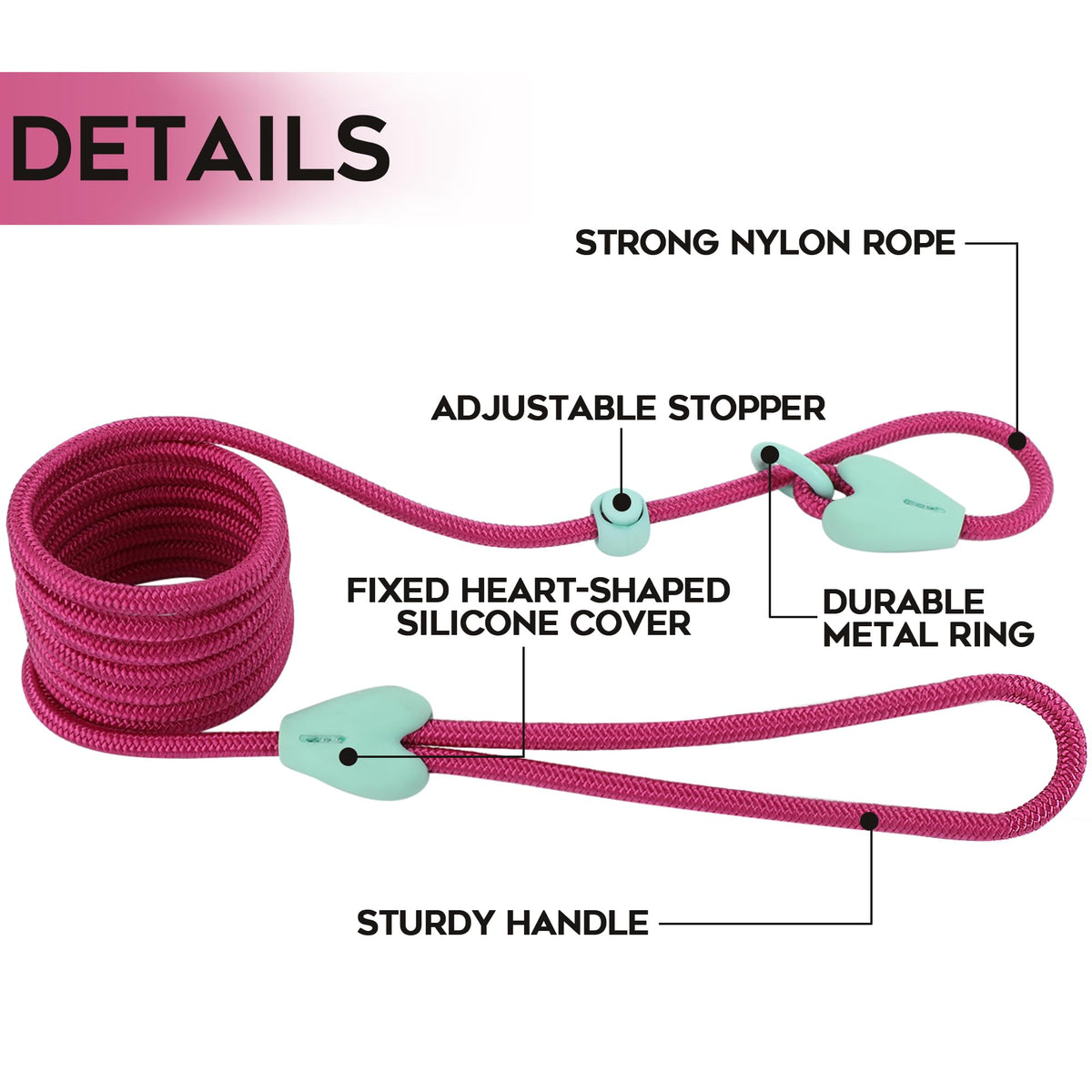 These 1/4'' x6FT Dog Leashes are excellent for the following reasons: Powerful Features: The collar tightens when your dog pulls and opens when the pressure is released Comfort Handle: Dog Slip Leash the curb at the end of the handle is easy to grab and comfortable to hold Light Enough And Good Quality: These durable dog leashes are light enough for dogs from 5 lbs to 60 lbs, Yet strong enough not to be frayed when dragged across the ground or chewed briefly Great Training Partner: No Pull Dog Leash works well with dogs during training, The Dog Training Leash Is comfortable and easy to use, perfect for puppy, medium dogs who needs some gentle persuasion The Perfect Slip Leash: affordable , nice Color, perfect length and lightweight Material: nylon Color: blue, purple, green, pink, rose red, lake green Package Contains: 1x Slip Dog Leash Dimensional Information: 1/4'' x6FT OneSize Sliding Dog Leash
