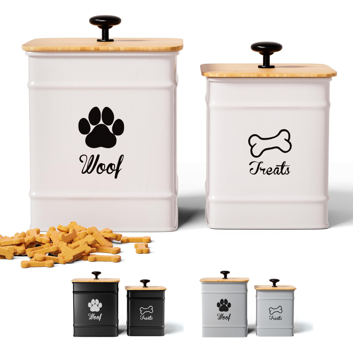 Dog Treat Container Airtight Set of 2 - 8x6 & 7x5 inch Iron Dog Treat Jars for Kitchen Counter with Airtight Bamboo Lids - 20 Cu