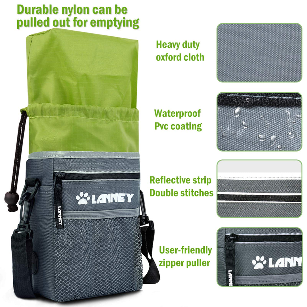 Hate searching for treats in your pocket when your dog needs a quick reward Frustrated with holding lots of treats in hands and the dog is focusing on your hands instead of learning With this dog treat pouch, you donAt have to search for treats Dog treat pouch keeps all essentials close at hand for rapid reward Dog will pay more attention to what you are saying TREAT STORAgE Unlike other Dog Training Pouches in the market, the Dog Training Pouch has extendable inner and generous compartment to securely carry treats, kibble, snacks, and pet toys The green inner can be pulled out for emptying MODERATELY SIZED The front zipper pocket opening is on the top of the dog treat pouch, which increases its space to fit most phones dog treat training bag has back zipped pocket and mesh pouch for other belongings POOP BAg DISPENSERS Our dog treat pouch is uniquely designed with 2 dispensers on sides for left hand or right hand quick accessing to waste bags You can tie off used bag and hang it on the D-rings TREAT POUcH DRAWSTRINg The treat carriers drawstring can be easily open with just one hand, so the other hand is ready for training With it fully open, you can quick access to treats Pouch can be fully tighten keeping all items inside 4 WAYS TO WEAR clip the pouch onto your belt The dog walking bag can ALSO be worn around your waist, over the shoulder or cross body Both straps are widened, comfortable, adjustable to fit men, women HIgH QUALITY IN EVERY DETAIL impeccable Workmanship durable Oxford cloth high density nylon inner Reflective stripes Reinforced zippers This dog treat bag is one of the perfect training accessories, ideal for dog owners to go for training classes, park outings, walking, etc Order it now and enjoy the time with your dog
