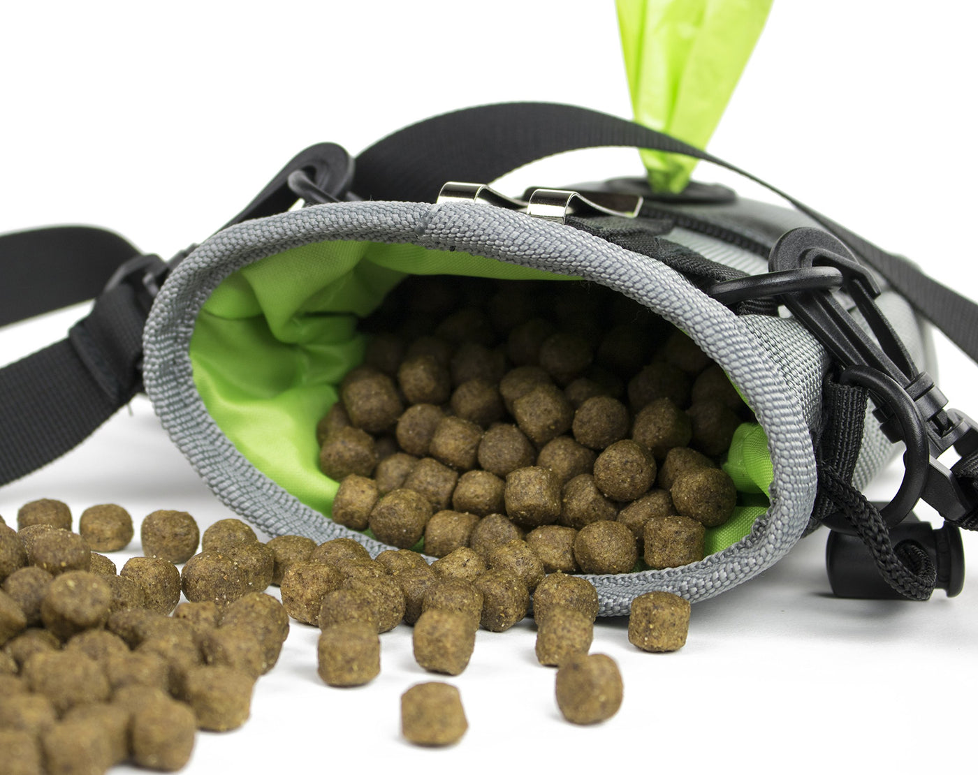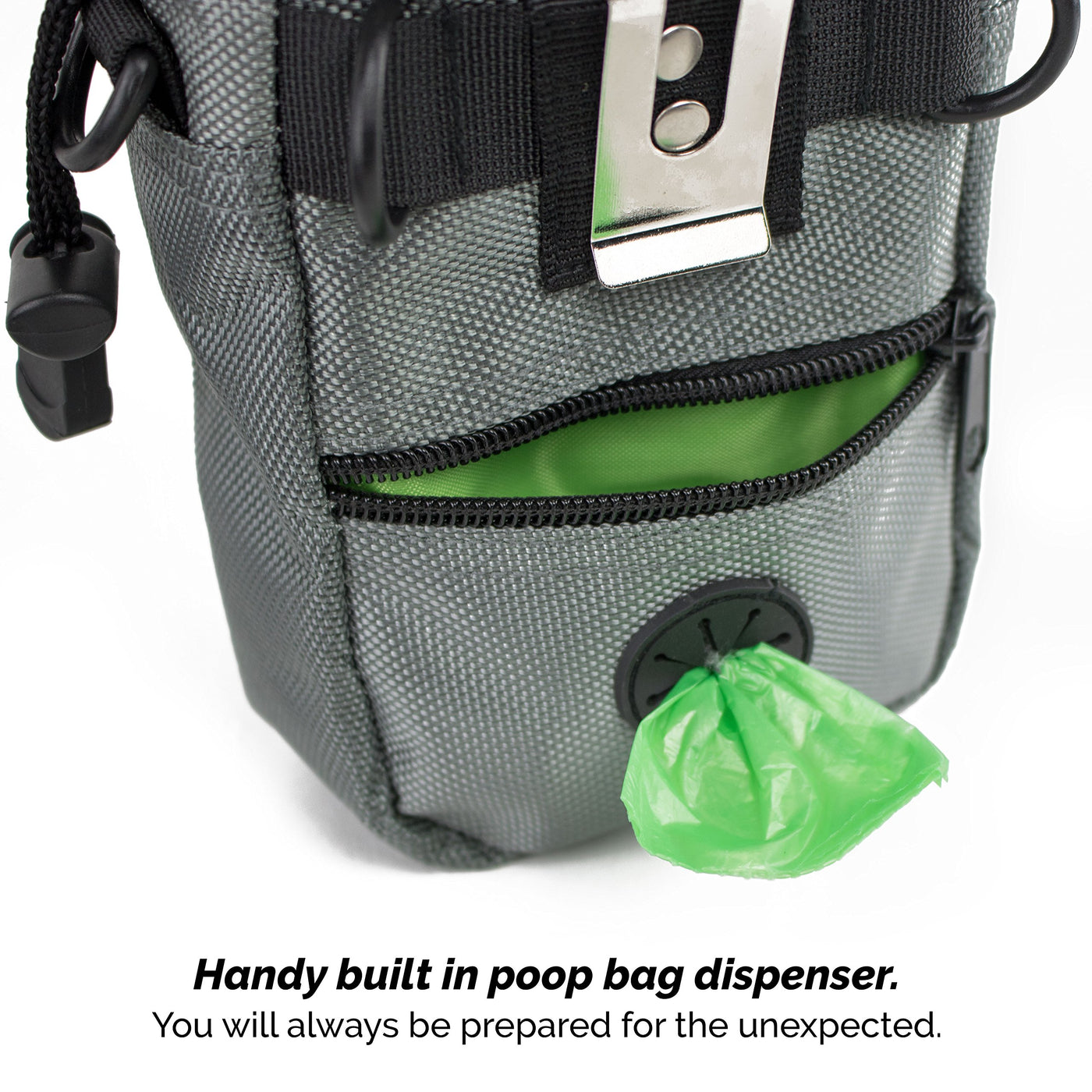 Dog Treat Pouch for Training with Poop Bag Dispenser, Includes 1 Roll of Pet Waste Bags, Metal Clip, Adjustable Waist Belt Makes