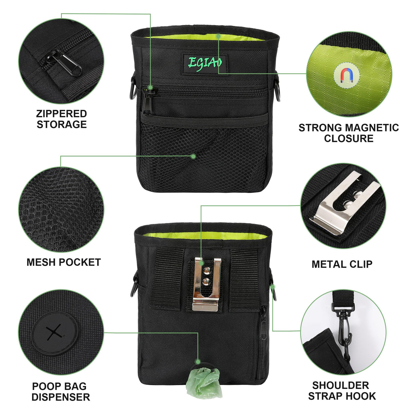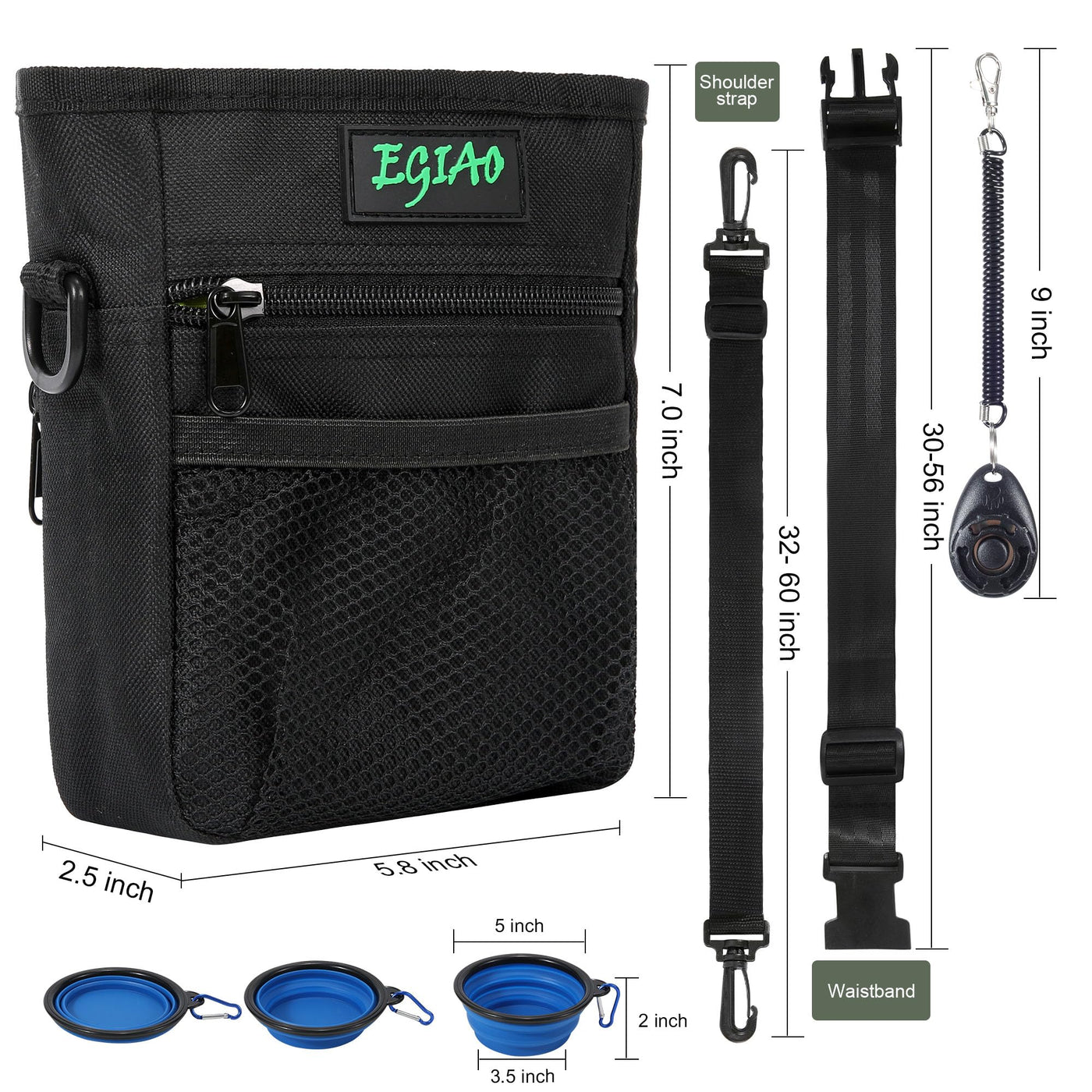 Dog Treat Pouch with Collapsible Dog Bowl, Training Clicker and Poop Bags, Treat Pouches for Pet Training, Built-in Poop Bag Dis