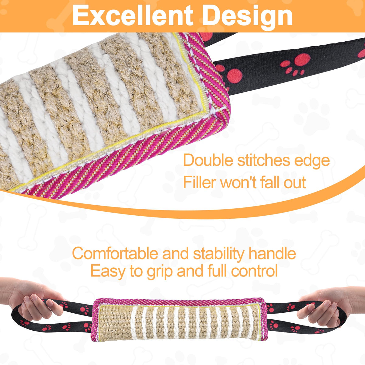 Dog Tug Toy Dog Bite Jute Pillow Pull Toy with 2 Strong Handles for Tug of War, Puppy Interactive Play, Tear Resistant Bite Trai