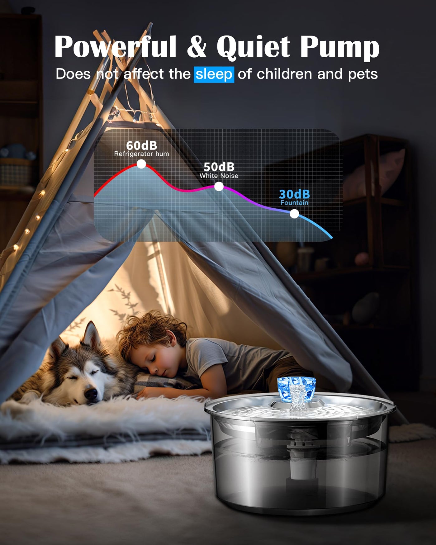 ?Perfect Fit?The Water Pump Is Specifically Designed For Lesotc Dog Cat Water Fountain. Water Pump Only. ?Super Quiet Working Sound?Whether For Cats Or Dogs, Having A Quiet Night Is A Wonderful Thing. Lesotc Adopts Silent Technology To Make The Water Pump Work At Only 20 Db, Which Greatly Reduces The Working Noise. ?Equipped With Led?The Water Pump Is Designed With Led Indicator Light. When The Pet Water Fountain Is Not Enough Water, The Led Indicator Light Will Turn Red And The Water Pump Will Stop Working, Prolonging The Life Of The Water Pump. ?Easy To Use & Clean?The Pet Fountain Water Pump Comes With A 6.6Ft Power Cord To Make It Easier To Connect To A Power Source. In Addition, It Can Be Easily Disassembled And Separated Without The Use Of Any Tools For Easy Cleaning. ?Abnormal Situation?If The Water Pump Suddenly Stops Working Or The Water Flow Becomes Low, We Recommend That You Clean The Water Pump First. After A Few Minutes, When The Air Pressure Inside The Water Pipe Is Discharged, The Water Pump Can Resume Normal Operation. If You Have Any Questions, Please Feel Free To Contact Us.