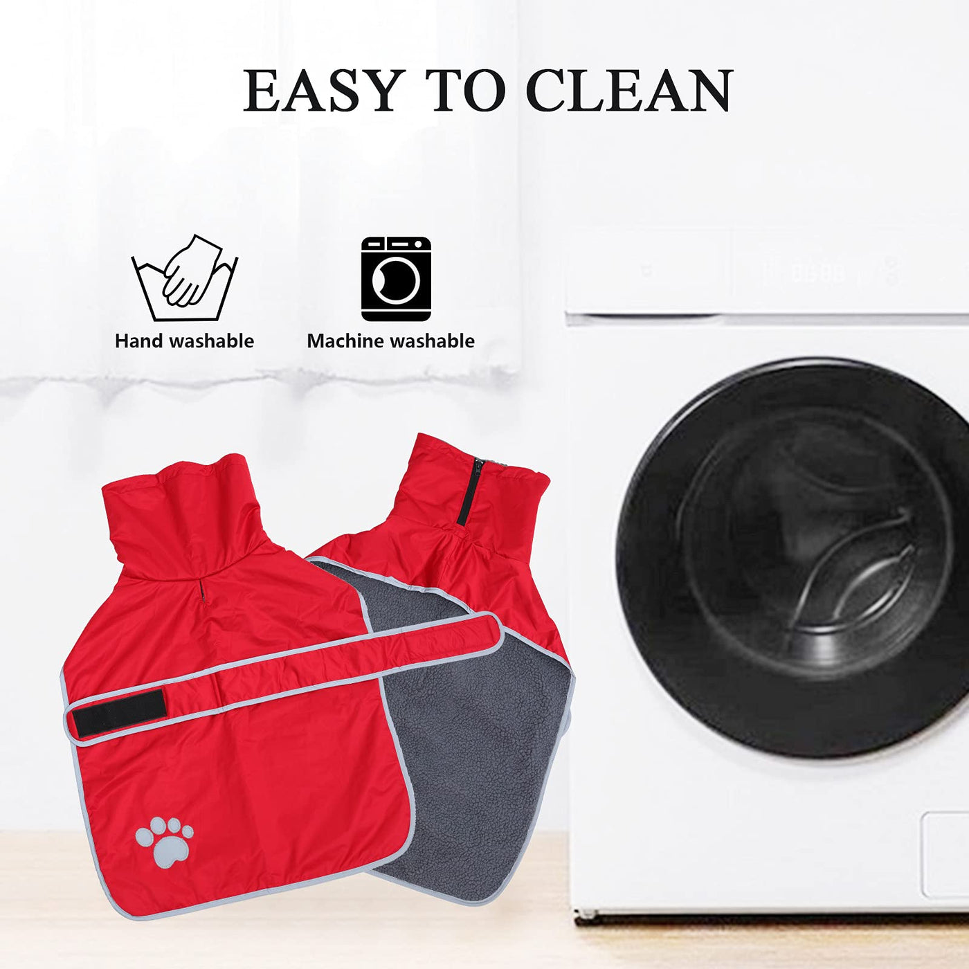 Feature: Windproof, Snowproof , Durable , lightweight, keep warm in cold weather winter, Simple to put on, strap around waist for additional security,And most importantly your dog comfortable and warm in it. This is a good coat for rainy or quite chilly days.