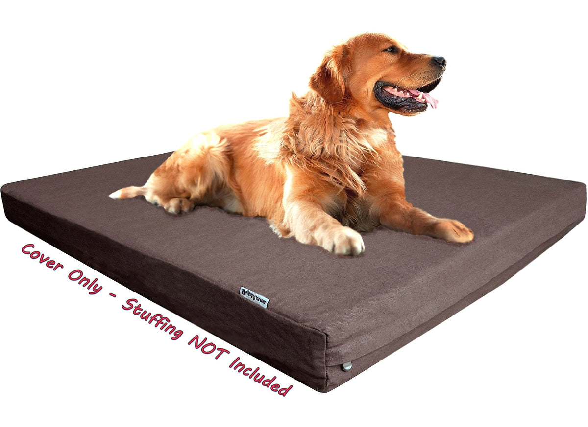 The listing is external replacement cover only without any stuffing or insert. This 47x29x4 inch zipper cover in brown color is made with durable 13oz/yard denim fabric for easy cleaning and maintenance. Our external denim cover is 100% cotton made which is interchangeable at top and bottom side and great for pets that are allergic to synthetic fabrics. The external cover is machine washable and dryable. This listing is for denim external replacement cover only, please visit Dogbed4less storefront here on Amazon for a complete dog bed with memory foam pillow or pad in small, medium, large, extra large, extra extra large, to jumbo sizes. Our pet bed cover make with high quality denim fabric to ensure the ultimate long lasting comfort that rarely sold by others. We believe that our pet deserves a comfortable bed like us for less. The size of this cover is designed to fit on dogbed4less XL sized pet bed products like our 47'X29'X4' pad bed or 47'X29' pillow bed. While this listing is for the external cover only, it offers the flexibility to create a cost efficient DIY pet bed tailored to your needs. Simply fill the cover with your choice of materials like old bed pillows, old comforters, bean bag filler, or shredded foam, as examples. beds, for example. You can stuff this cover with 4 human king size bed pillows to create an easy bed for your furry friend. For added protection and durability, we recommend pairing your DIY bed with one of our internal waterproof protective liners, ensuring the filling stays clean and dry for a longer lasting bed.