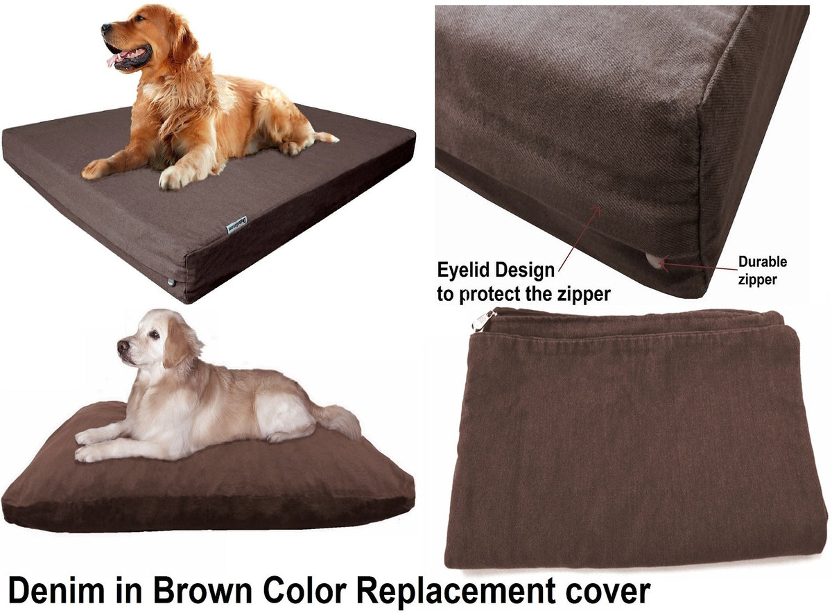 Dogbed4Less 47X29X4 Inches Extra Large Size Brown Color Denim Jean Dog Pet Bed External Zipper Cover - Replacement Cover Only