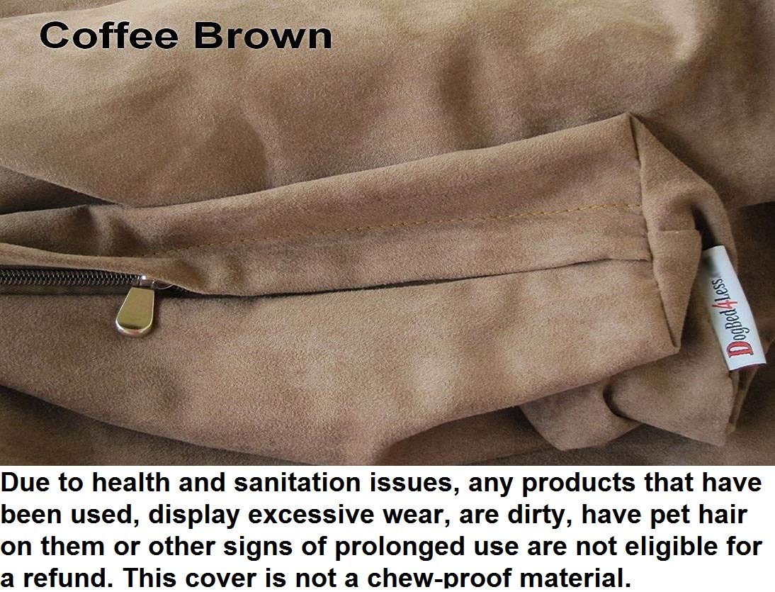 The listing is external replacement cover and internal cover only without any stuffing or insert. This 55'X37'X4' inch zipper cover in brown color is made with durable 180GSM microsuede fabric for easy cleaning and maintenance. Our external microsuede cover is stain resistant with a synthetic polyester blend which is interchangeable at the top and bottom side. The external cover is machine washable and dry-able.This micro-suede polyester external cover is not recommended for pets with aggressive chewing behavior because once a dog is determined, they will able to destroy even the toughest carpet and furniture. This listing also comes with waterproof internal zipper cover on both sides to temporarily prevent any liquids to sip into the stuffing under normal use. Great for an older dog with a bladder problem. This listing is for microsuede external replacement cover and waterproof internal cover only, please visit dogbed4less storefront here at amazon for a complete dog bed with memory foam pillow or pad in small, medium, large, XL to XXL jumbo sizes. Our dog bed cover makes with high-quality microsuede fabric to ensure the ultimate comfort and long-lasting that rarely sold in other retailers due to the higher cost in material. The same fabric is sold for $12.99 to $19.99 per yard in larger retail shop likes joann which equivalent to $30+ just the raw fabric alone for the external cover. We believe that our pet should deserve a comfortable bed like us with a fraction of the cost. The size of this cover is designed to fit on dogbed4less 55'X37 inch pet bed products like our pad bed and pillow bed. The covers may also fit on 8 human bed queen size pillows. Dogbed4less brand name is a registered trademark of dogbed4less seller.