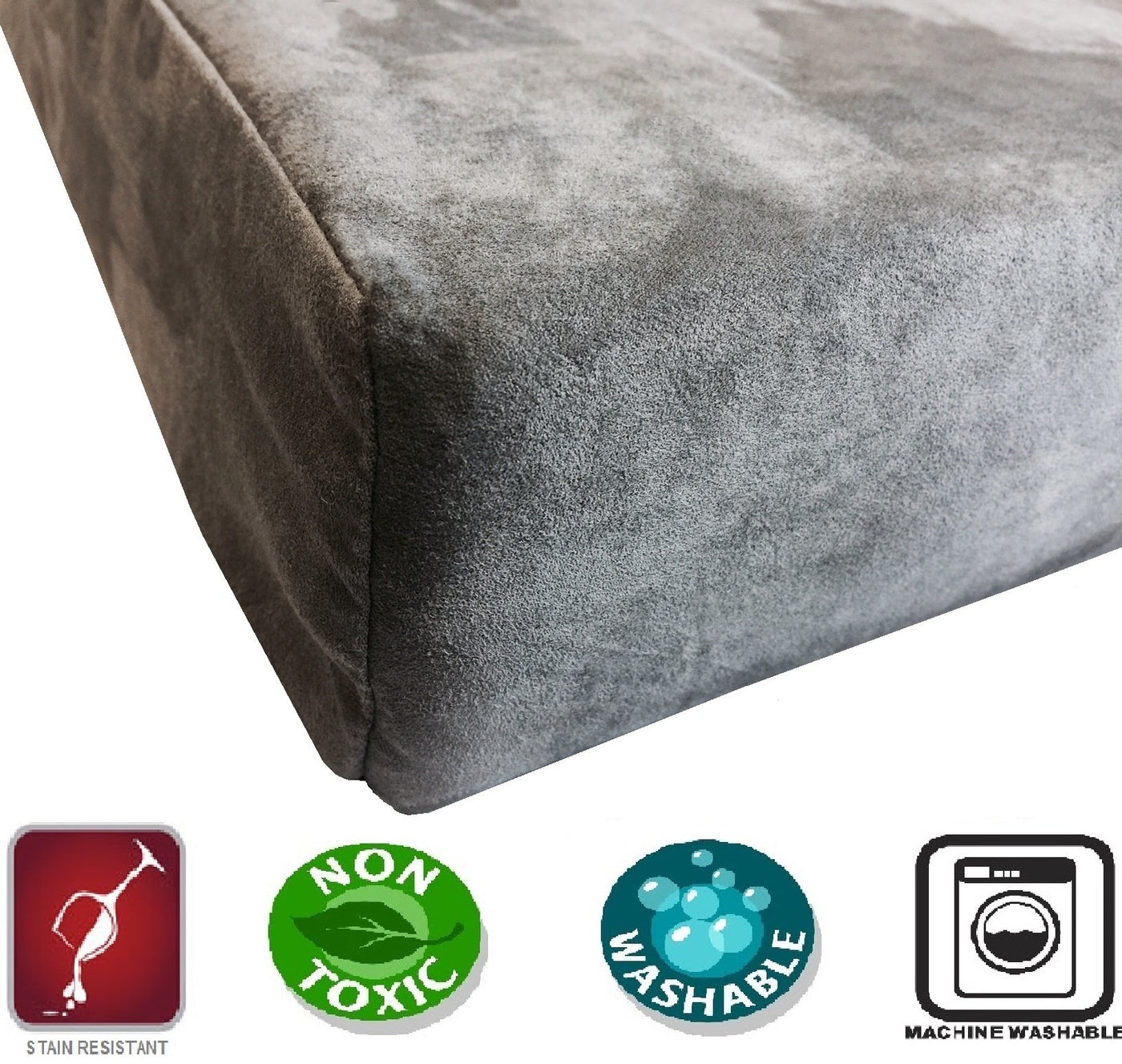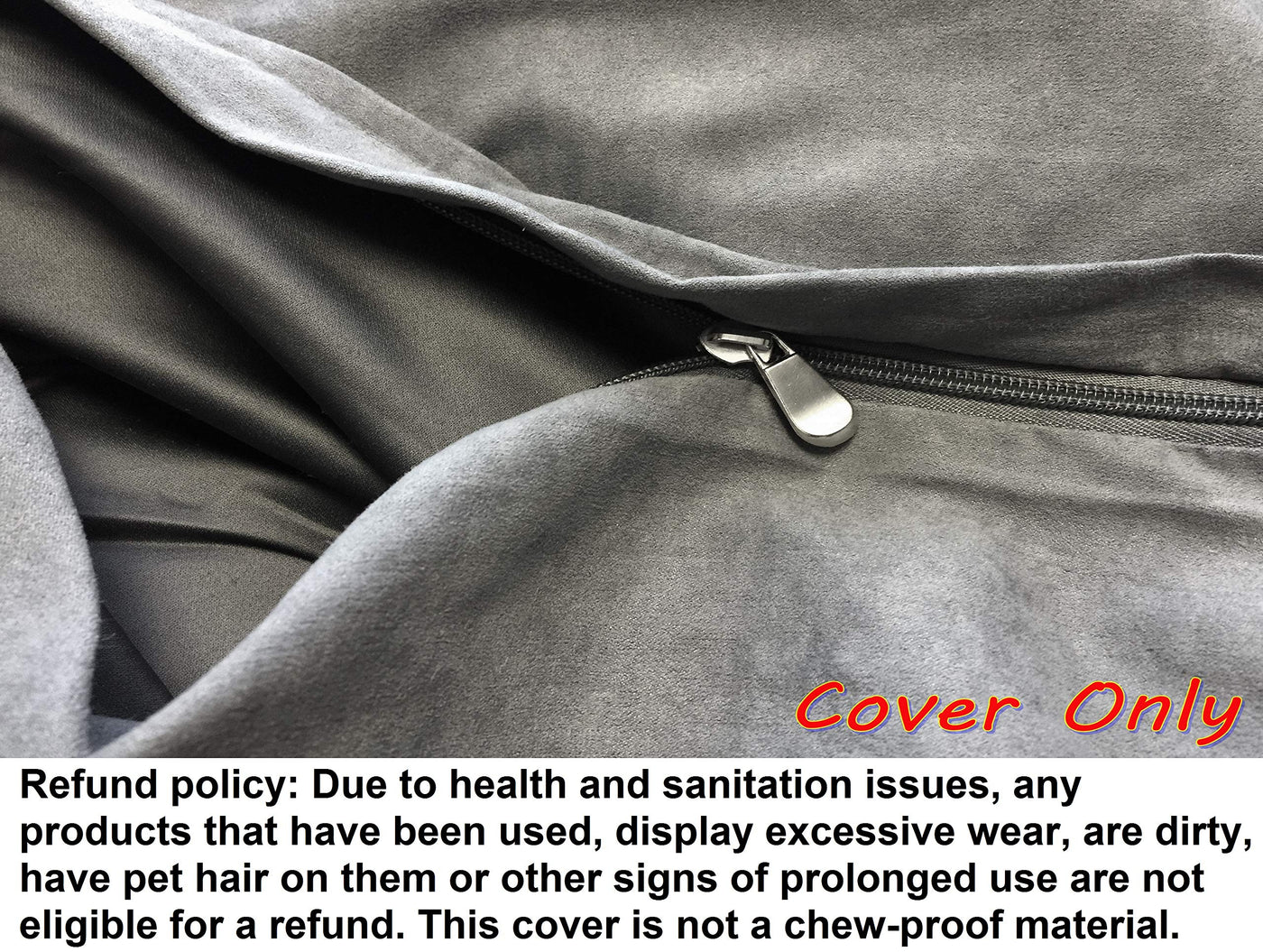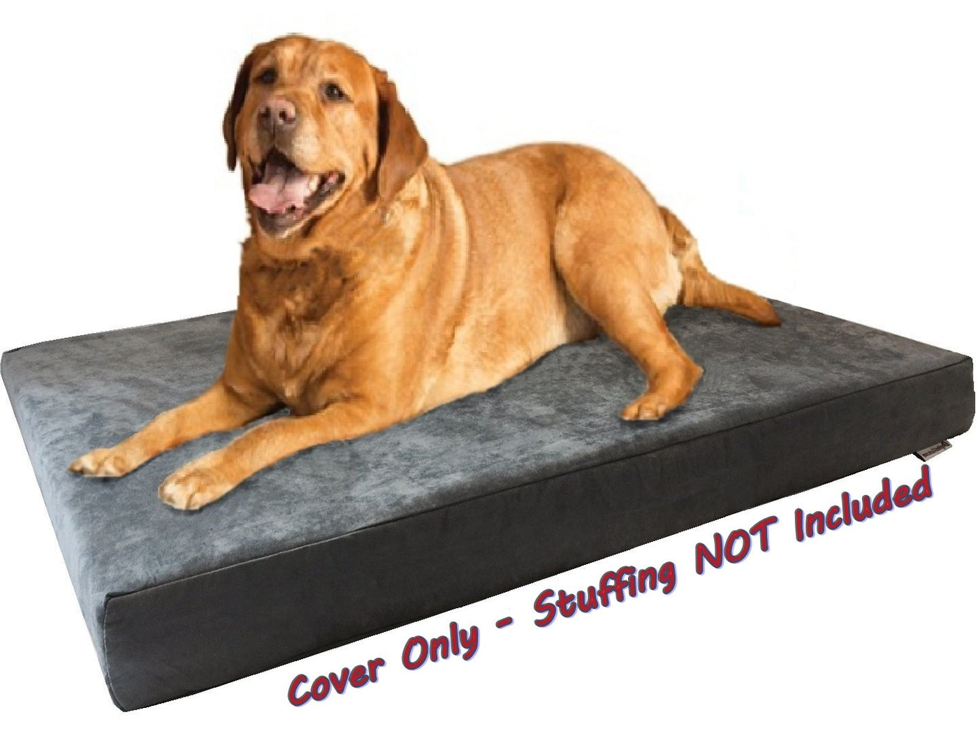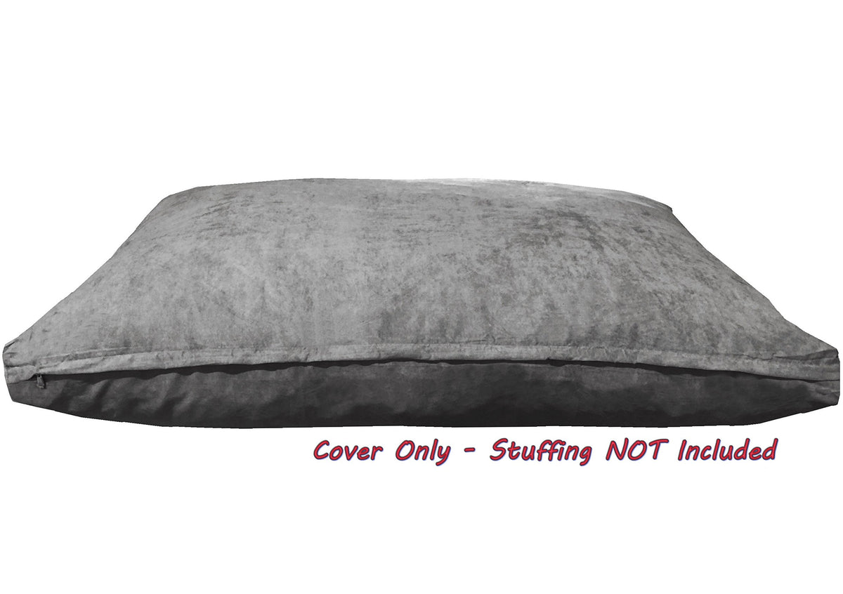 The listing is external replacement cover and internal cover only without any stuffing or insert. This 47'X29'X4' inch zipper cover in gray color is made with durable 180GSM microsuede fabric for easy cleaning and maintenance. Our external microsuede cover is stain resistant with a synthetic polyester blend which is interchangeable at the top and bottom side. The external cover is machine washable and dry-able.This micro-suede polyester made external cover is not recommended for pets with aggressive chewing behavior because once a dog is determined, they will able to destroy even the toughest carpet and furniture. This listing also comes with waterproof internal zipper cover on both sides to temporarily prevent any liquids to sip into the stuffing under normal use. Great for an older dog with a bladder problem. This listing is for microsuede external replacement cover and waterproof internal cover only, please visit dogbed4less storefront here at amazon for a complete dog bed with memory foam pillow or pad in small, medium, large, extra large to extra extra large and jumbo sizes. Our dog bed cover makes with high-quality microsuede fabric to ensure the ultimate comfort and long-lasting that rarely sold in other retailers due to the higher cost in material. The same fabric is sold for $12.99 to $19.99 per yard in larger retail shop likes joann which equivalent to $28+ just the raw fabric alone for the external cover. We believe that our pet should deserve a comfortable bed like us with a fraction of the cost. The size of this cover is designed to fit on dogbed4less 47'X29' inch pet bed products like our memory foam pad bed and pillow bed stuffed with shredded memory foam. The covers may also fit on 6 human bed standard size pillows. Dogbed4less brand name is a registered trademark of dogbed4less seller.