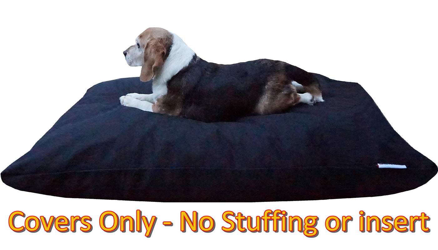 The listing is external replacement cover only without any stuffing or insert. This 48X29 inch flat zipper cover in black color is made with durable 10oz/yard canvas fabric for easy cleaning and maintenance. Our external canvas cover is 100% cotton made which is interchangeable at top and bottom side and great for pets that are allergic to synthetic fabrics. The external cover is machine washable and dry-able. This listing is for canvas external replacement cover and internal cover only, please visit dogbed4less storefront here at amazon for a complete dog bed in various sizes. Our pet bed cover make with high quality canvas fabric to ensure the ultimate comfort and long lasting that rarely sold in other retailer due to the higher cost in material. We believe that our pet should deserve a comfortable bed like us with the fraction of the cost. The size of this cover is designed to fit on 3 human queen size bed pillows.