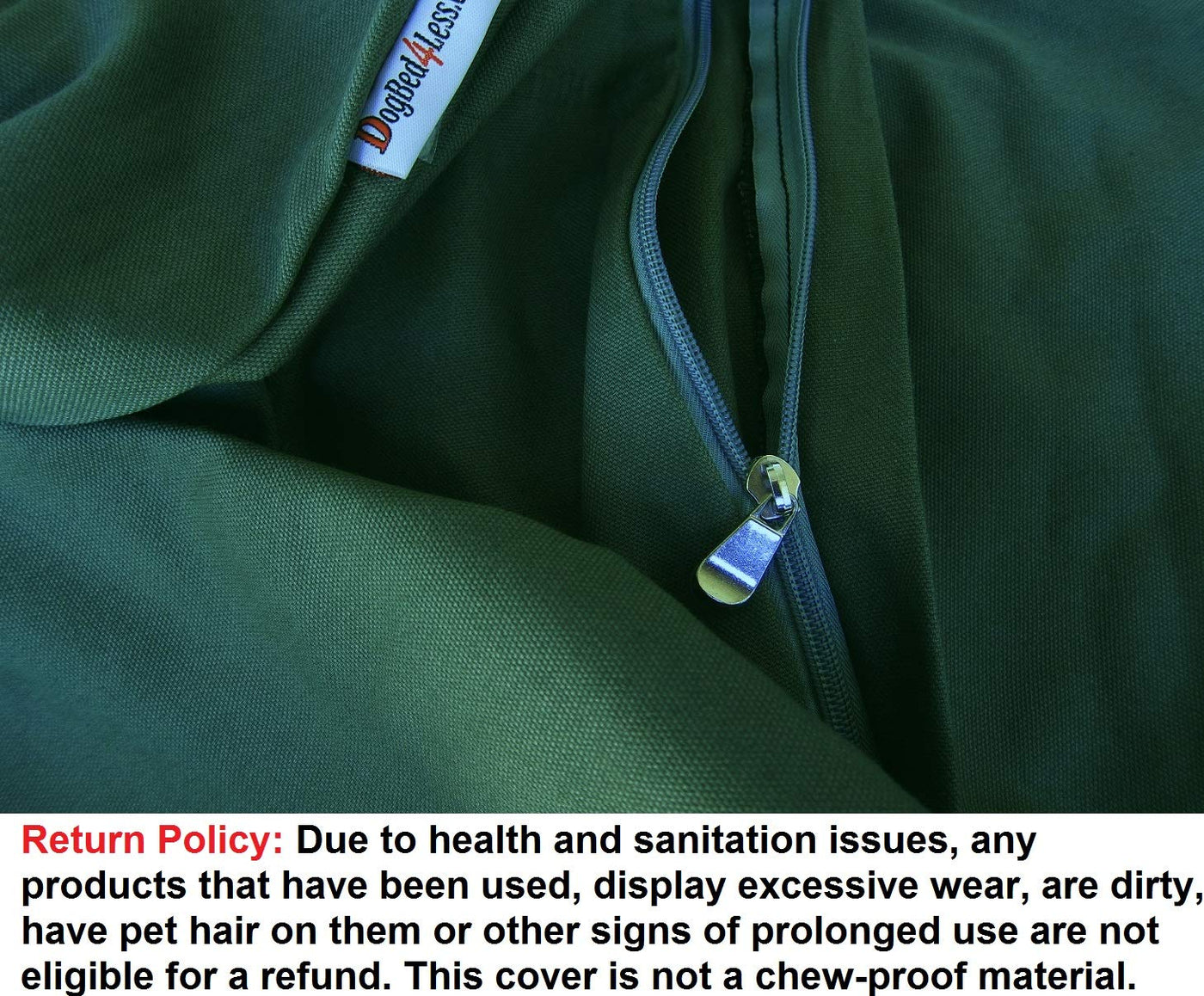 This 55'X37'X4' zipper cover in olive green color is made with durable 11 oz. / yard denim fabric for easy cleaning and maintenance. Our external denim cover is 100% cotton made which is interchangeable at the top and bottom side and great for pets that are allergic to synthetic fabrics. The external cover is machine washable and dry-able. This listing is for denim external replacement cover only, please visit dogbed4less storefront here on amazon for a complete dog bed with memory foam pillow or pad in small, medium, large, XL, XXL to jumbo sizes. This 100% cotton made comfortable cover is not a chew-proof or scratch-proof material which is not recommended for pets with aggressive chewing behavior, once a dog is determined, they will able to destroy even the toughest carpet and furniture. Our dog bed cover makes with high-quality denim fabric to ensure the ultimate comfort and long-lasting that rarely sold in other retailers due to the higher cost in material. The same fabric is sold for $18.99 to $29.99 per yard in larger retail shop likes joann which equivalent to $40+ just the raw fabric alone for this cover. We believe that our pet deserves comfort at reasonable prices.