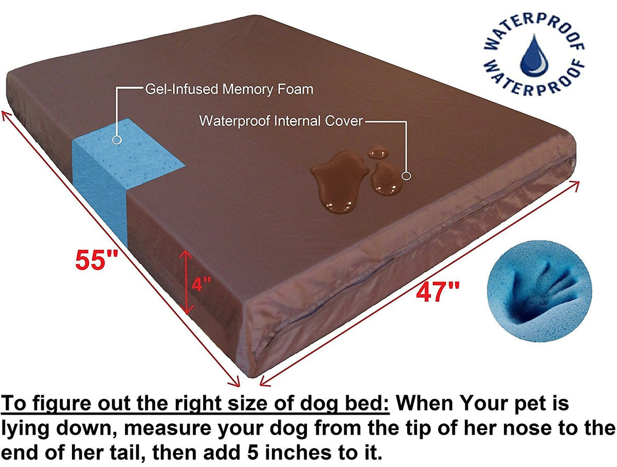 Dogbed4Less Heavy Duty Waterproof Memory Foam Orthopedic Cool Memory Foam Pet Bed For Large Dog, Jumbo 55'X47'X4'