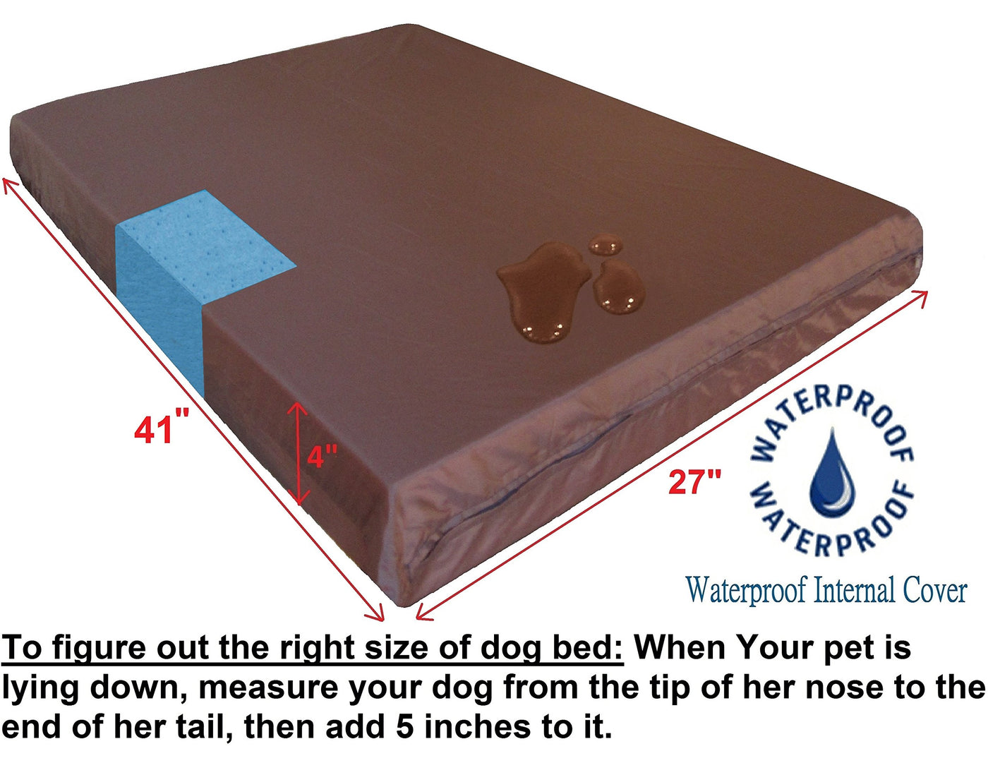 41'' Length X 27'' Width X 4'' Thick Is Ideal For Medium Large Breed Dogs And Also Fit Into 42''X28'' L Dog Crate. The Order Comes With 1 Durable Denim Cover In Blue Color, 1 Waterproof Internal Zippered Cover And 1 Solid 4 Inches Gel-Infused Memory Foam Insert Pad.Tired Of The Pet Beds That Easily Tear, Are Difficult To Clean And Don'T Provide Your Pet The Comfort They Deserve? Dogbed4Less Offer The Best Material For Comfort, Support, Durability And Easy To Clean Cover That Blends In Seamlessly To Your Home. Our Pet Bed Products Are Made With High Quality Durable Fabric And Top Rated Memory Foam To Ensure The Ultimate Comfort And Orthopedic Support, Which Are Rarely Sold Elsewhere Due To The Higher Cost And Weight. Unlike Other Lower Cost Multi-Layer Glued Partial Memory Foam, We Do Not Cut Corners And Only Offer 3.2 Lbs High Density Solid Memory Foam Similar To High End Human Therapeutic Mattress Stores To Promote Better Sleep And Healthy Joint. Our High Density Memory Foam Is 5 Times Denser And 4 Times Heavier Than Regular Foams, Which Will Not Flatten Overtime And Provide Many Years Of Comfort And Support. Temperature Regulating Gel Memory Foam Will Keep Dog Cool In Summer And Warm During Winter. 2 Excellent Layers Of Fabric Covers: Internal Layer Taffeta Waterproof Fabric Zipper Cover To Help Secure The Pad And A Durable 13 Ounce/Yard Jean Denim Fabric Zipper External Cover (41''X27''X4'' Size) For Easy Cleaning. Our External Denim Cover Is 100 Percent Cotton Which Is Interchangeable For Top Or Bottom Side To Benefit The Pets That Are Allergic To Synthetic Fabrics. The External Cover Is Machine Washable And Dry-Able. Additional Replacement Cover, More Sizes From Small, Medium, Extra Large To Jumbo Are Available Here By Clicking The Dogbed4Less Link On The Top Next To The Title.